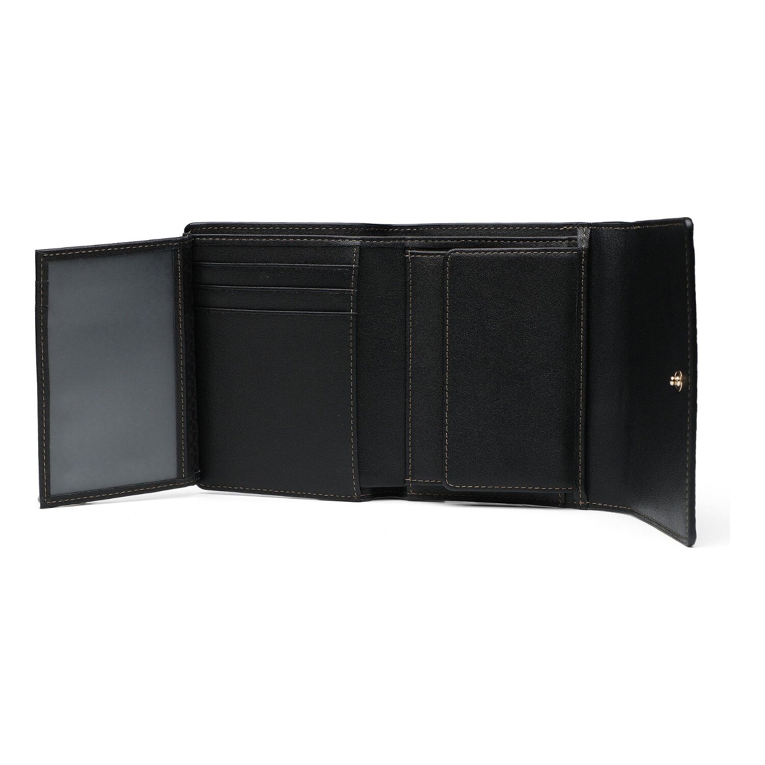Chic style meets sophisticated functionality with the landscape-format ladies' wallet from the Deborah series by Aigner. Made from high-quality leather, the wallet impresses with its robust feel and elegant look. Thanks to the practical layout, it keeps everything neat and tidy: five credit card slots, a coin compartment, a bill compartment and three additional slip pockets offer enough space for all your important documents. The wallet can be securely closed with a handy press stud. Choose Aigner's Deborah wallet for a touch of luxury in your everyday life.