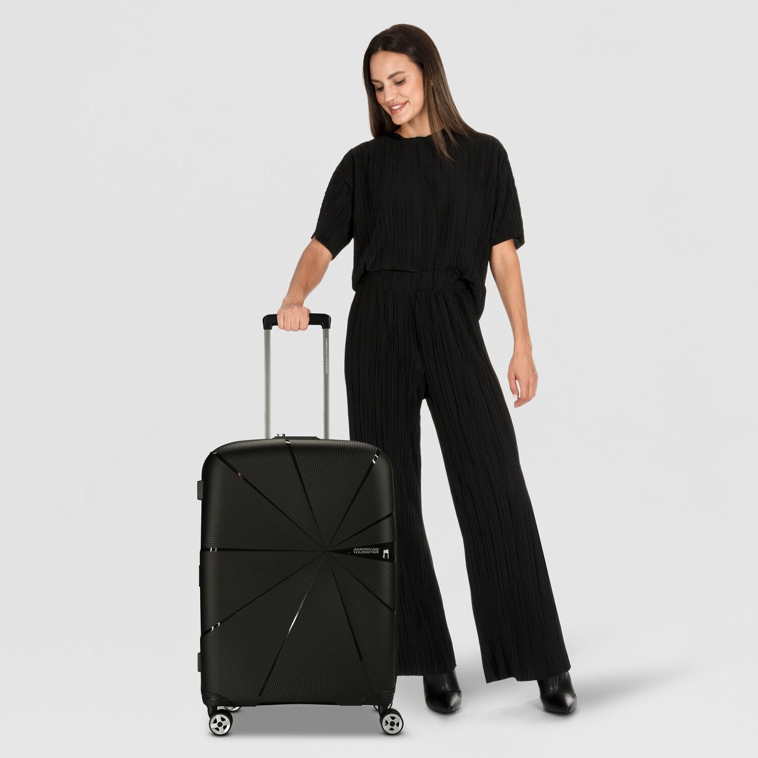 The Starvibe hard suitcase from American Tourister transforms every travel experience into a stylish encounter with comfort and design. Equipped with four smooth-running wheels, a lockable handle and useful features such as a laundry compartment, cross-body strap and zippered compartment, this suitcase offers plenty of space and organization for any adventure. Thanks to the expandable pleat, even spontaneous vacation souvenirs can easily be stored. A special feature is the carrying handle, which guarantees extra comfort over short distances. Made from durable and lightweight polypropylene, the suitcase secures the contents with a secure TSA lock. Starvibe makes traveling a pleasure!