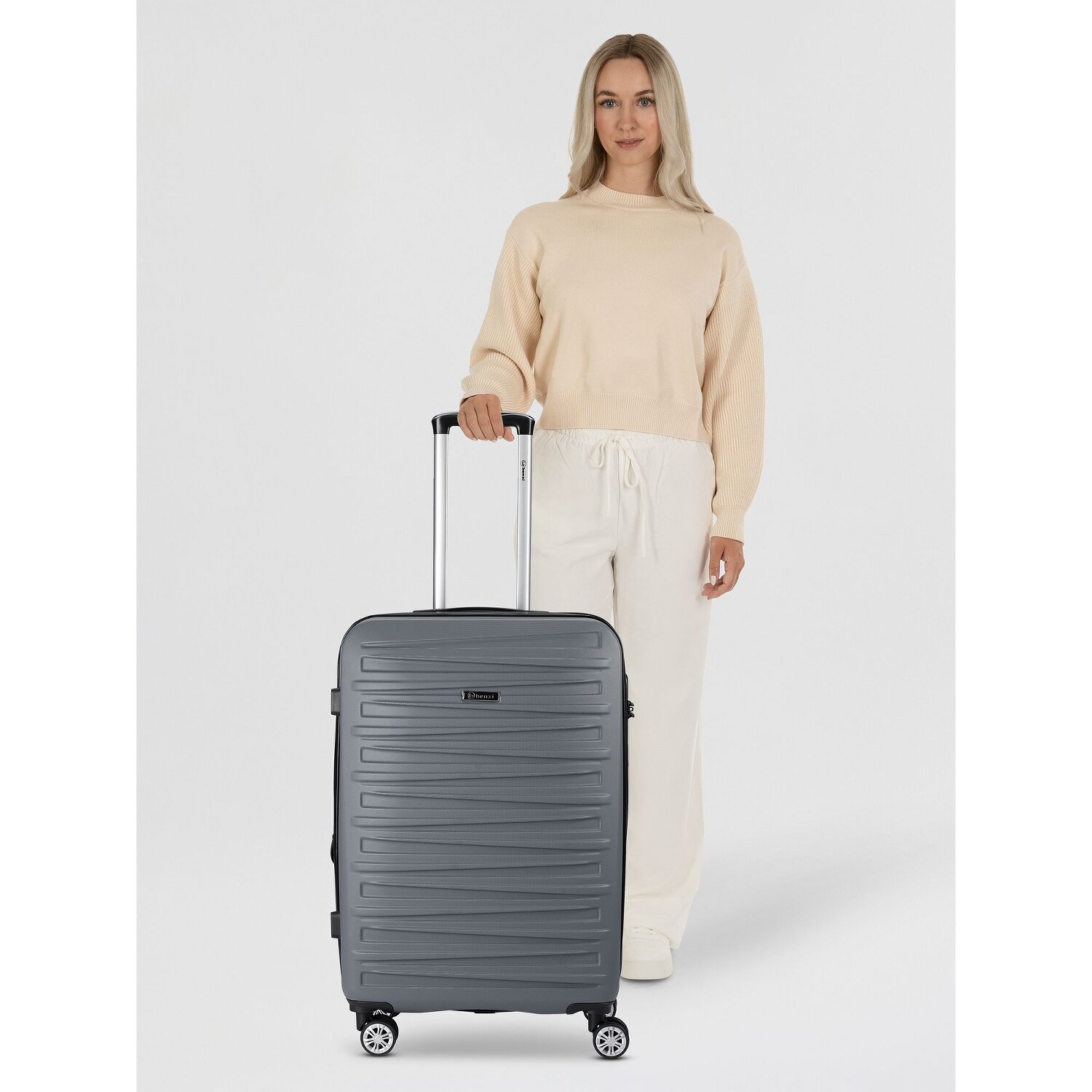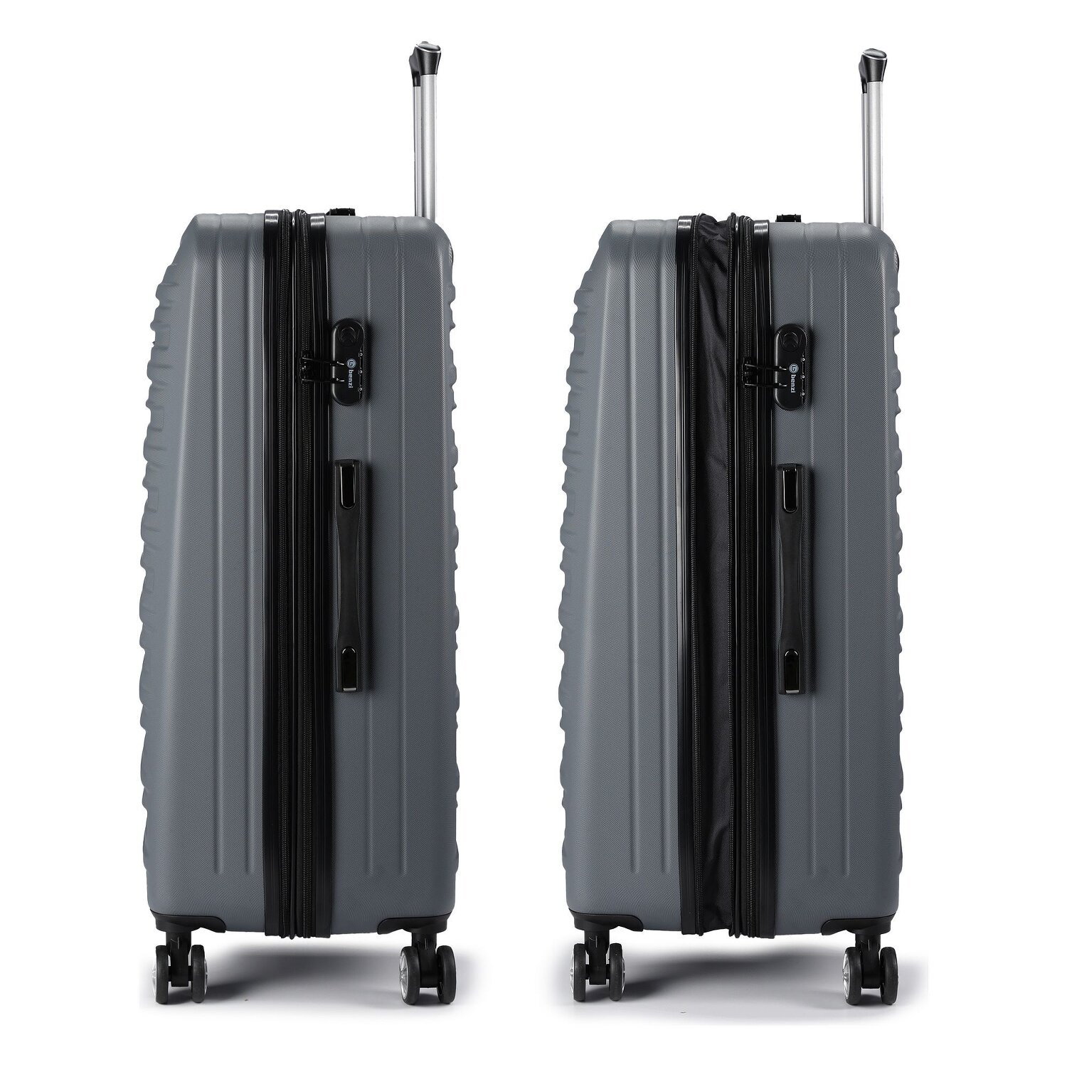 A new era of stress-free travel has arrived with the Benzi 5493 series hard suitcase. Sophisticated details such as an integrated stretch pleat, a spacious laundry compartment, a practical cross-body strap and a durable mesh compartment ensure organization and comfort. The easy-to-use, lockable handle and an additional carrying handle make maneuvering a breeze. Made from particularly hard-wearing ABS, the suitcase is the ideal companion for all adventurers. And thanks to the integrated TSA lock, your belongings are always kept safe. Immerse yourself in the world of stress-free travel with Benzi! Thanks to the expansion pleat, the suitcase can be extended to a width of 28 cm.