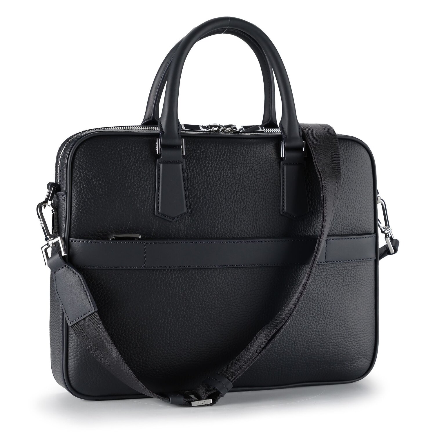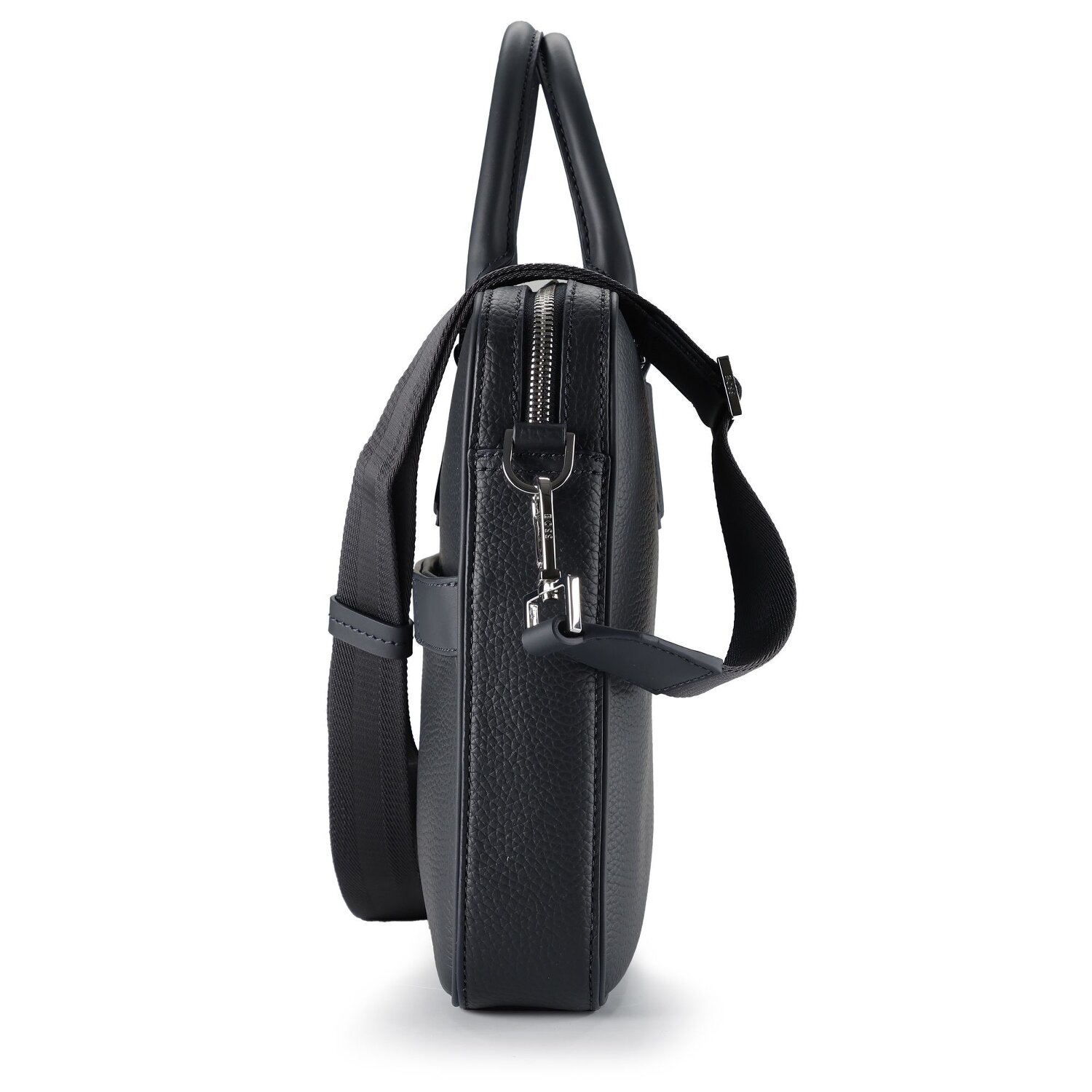The men's briefcase with laptop compartment from the New series by Boss represents an elegant business presence. High-quality, flawless leather characterizes this product line, combined with an uncomplicated zipper for easy access. It offers a wealth of organization options with pen pockets, a cable pouch and compartments especially for A4 documents, while the spacious laptop compartment, suitable for 39 cm screen diagonals, safely stores your technology. As a special extra, the bag can be attached to your trolley, making it the perfect travel companion. Don't wait any longer - the Boss New briefcase is your new must-have for everyday business.