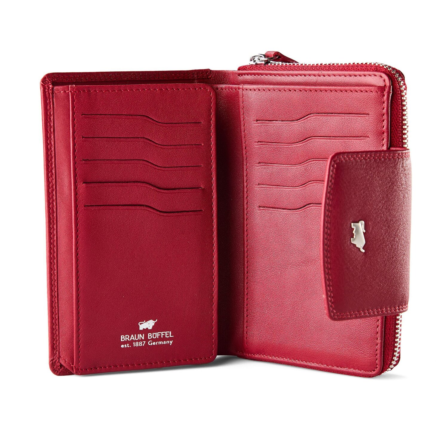 Immerse yourself in the world of Braun Büffel's Golf 3.0 series with this landscape-format ladies' wallet. Equipped with 15 credit card slots, a coin, bill and ID compartment, as well as 3 additional slip pockets, it offers optimal space and organization for your finances. The magical element of the press stud fastening ensures security, while the high-quality leather exudes a touch of luxury and durability. But the elegance of the Golf 3.0 wallet doesn't stop there; it protects your data with built-in RFID protection. A masterpiece of function and design - a must-have for the modern, style-conscious woman.
