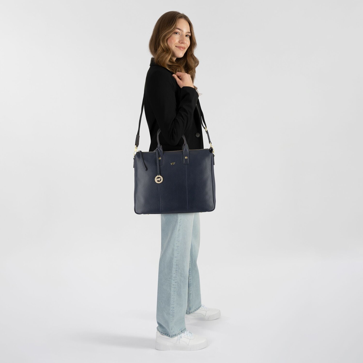 Start the day in style with the stunning Braun Büffel shopper from the Hanna range. Designed for the discerning woman, this bag offers various practical compartments inside and out, including a special cell phone pocket and a secure zippered compartment. The integrated bottom studs ensure stability and the cleverly designed compartments offer space for your A4 documents. Made from the highest quality leather, the bag is robust yet supple. An easy-access zipper secures your valuables, while the medium-length shoulder strap and an adjustable, detachable shoulder strap offer versatile carrying options. A laptop compartment for devices with a screen size of up to 41 cm rounds off the impressive profile of this bag. Don't miss out on this stylish addition to your everyday life.