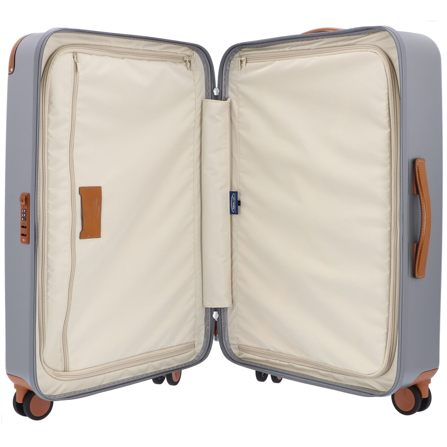 The chic 4-wheel trolley from the Amalfi series is made of lightweight, particularly durable polycarbonate and trimmed with leather. Four silent and in all directions movable double wheels ensure a comfortable ride. The trolley features two spacious main compartments, one with a zippered pocket, the other with an integrated cross-body packing strap, as well as a protected zipper, TSA lock and lockable telescopic handle. Combined with the usual elegant and stylish design of Bric's, this trolley is a real eye-catcher and the perfect companion on any trip.