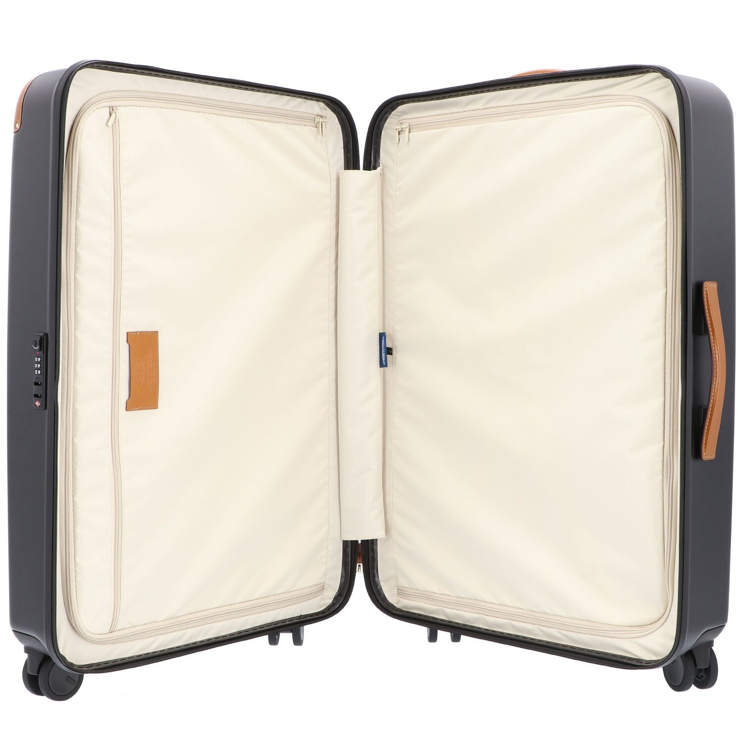 The chic 4-wheel trolley from the Amalfi series is made of lightweight, particularly durable polycarbonate and trimmed with leather. Four silent and in all directions movable double wheels ensure a comfortable ride. The trolley features two spacious main compartments, one with a zippered pocket, the other with an integrated cross-body packing strap, as well as a protected zipper, TSA lock and lockable telescopic handle. Combined with the usual elegant and stylish design of Bric's, this trolley is a real eye-catcher and the perfect companion on any trip.
