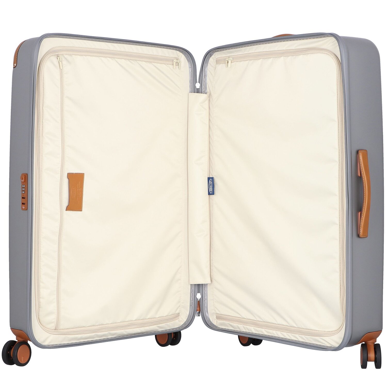 The chic 4-wheel trolley from the Amalfi series is made of lightweight, particularly durable polycarbonate and trimmed with leather. Four silent and in all directions movable double wheels ensure a comfortable ride. The trolley features two spacious main compartments, one with a zippered pocket, the other with an integrated cross-body packing strap, as well as a protected zipper, TSA lock and lockable telescopic handle. Combined with the usual elegant and stylish design of Bric's, this trolley is a real eye-catcher and the perfect companion on any trip.