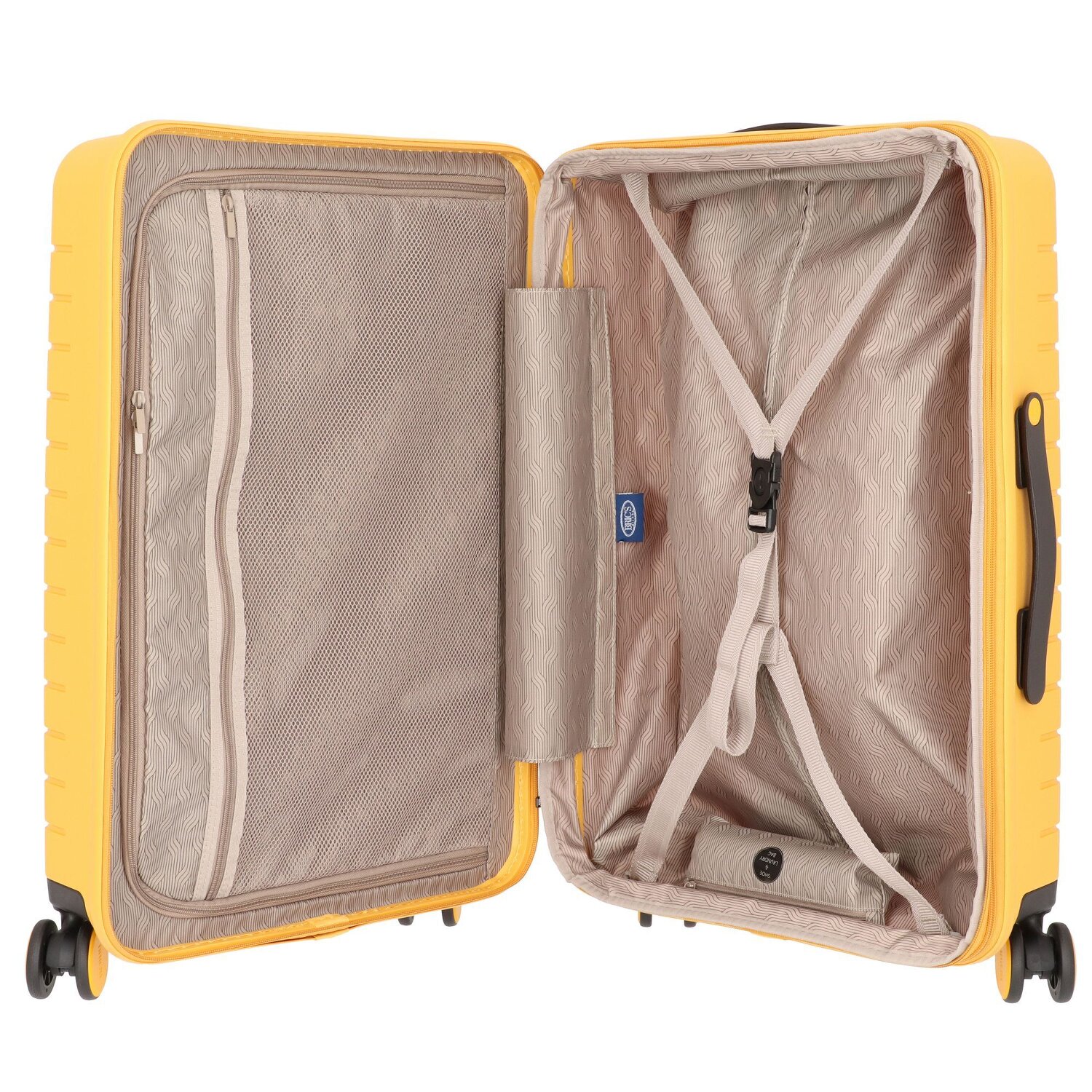 Design strong and colorful 4-wheel trolley from Bric's of the BY Ulisse series made of durable polypropylene. The trolley has a spacious main compartment with a cross packing strap, as well as a separately packable side compartment and offers plenty of space for their luggage. The volume of the main compartment is also expandable by the expansion fold. In addition, the trolley is equipped with a removable shoe / laundry bag. Four silent and in all directions movable double wheels, lockable handle and an integrated TSA lock for additional security round off the trolley.