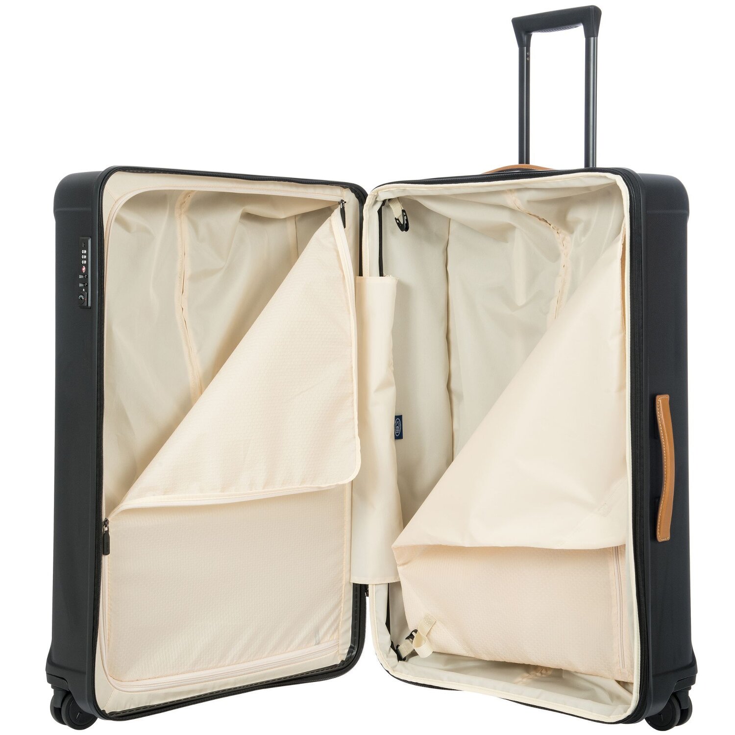 Bric's Capri 4-wheel trolley made of polycarbonate and a great interior incl. laundry compartments to store your luggage. The depth of the can be extended by 4 cm to approx. 36 cm by means of a zipper.