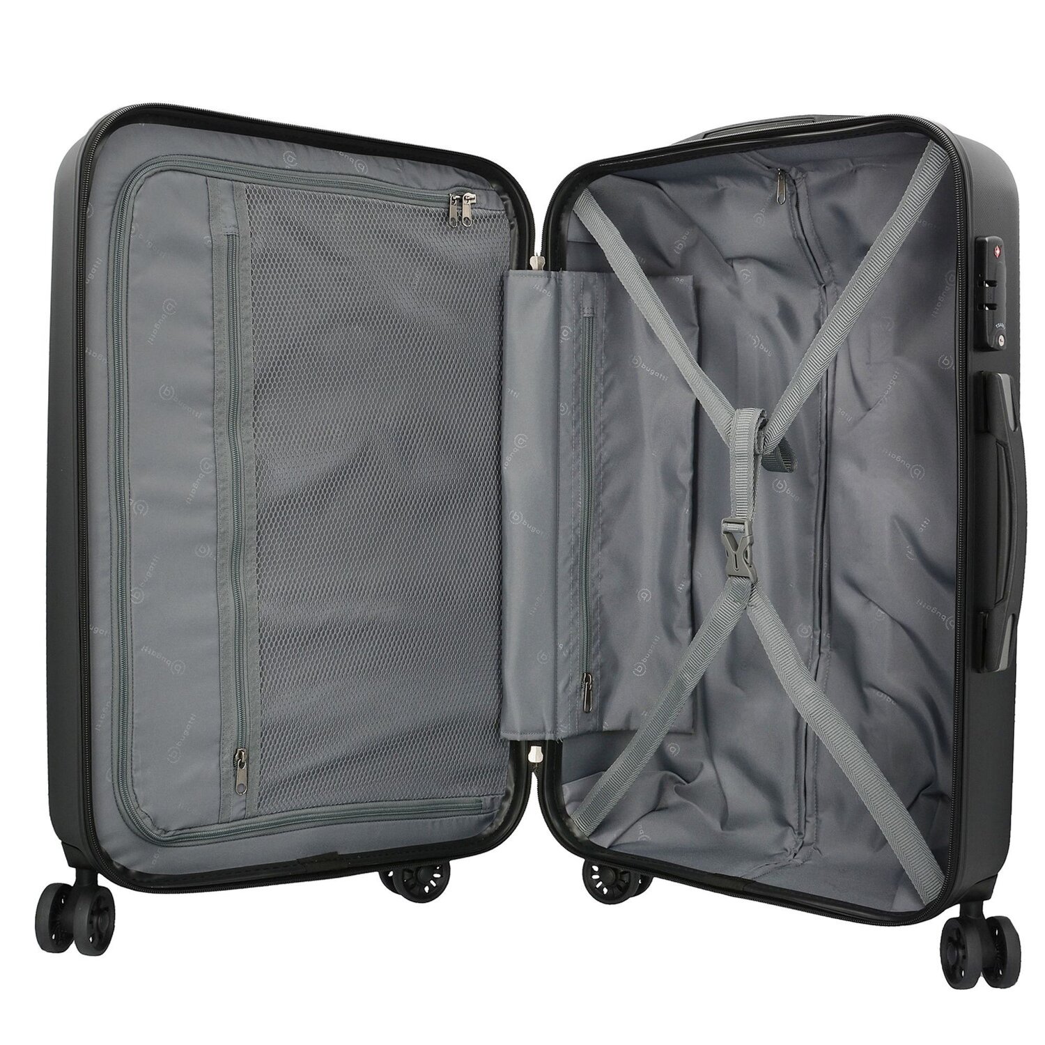 - Features: Zipper compartment, Mesh compartment, Lockable handle, Lining, Inside pocket(s), Inner packing straps
