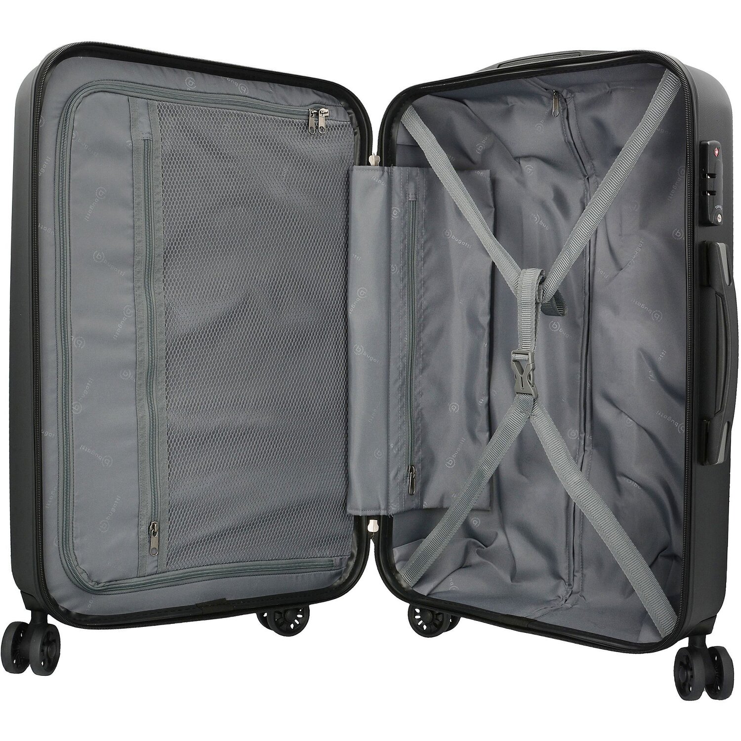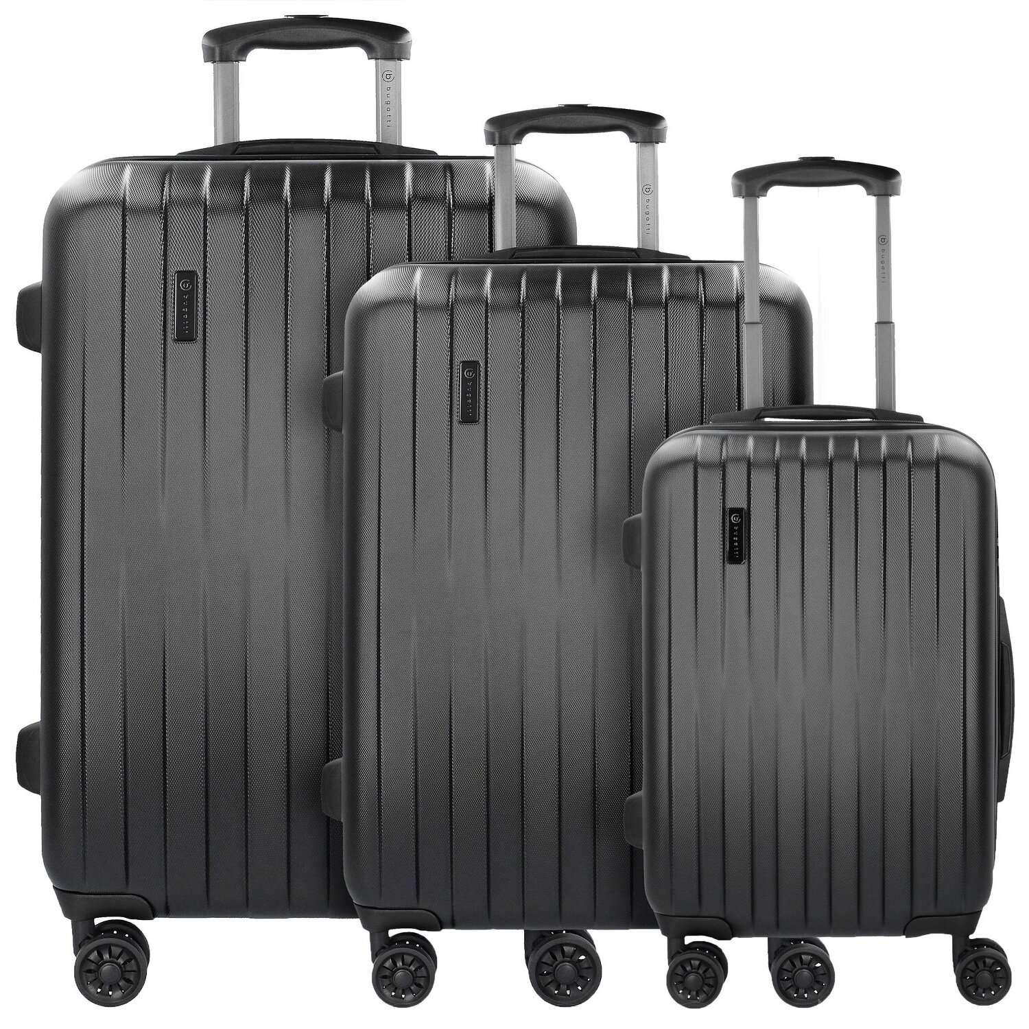 bugatti Lima 4-wheel suitcase set made of ABS material, particularly scratch-resistant and lightweight. The suitcases from the Lima series by bugatti are particularly flexible thanks to the 4 smooth-running castors and can be easily moved in all directions. The perfect home for your luggage.