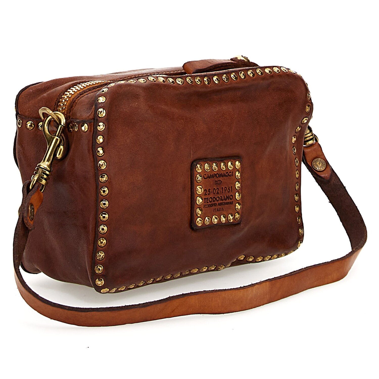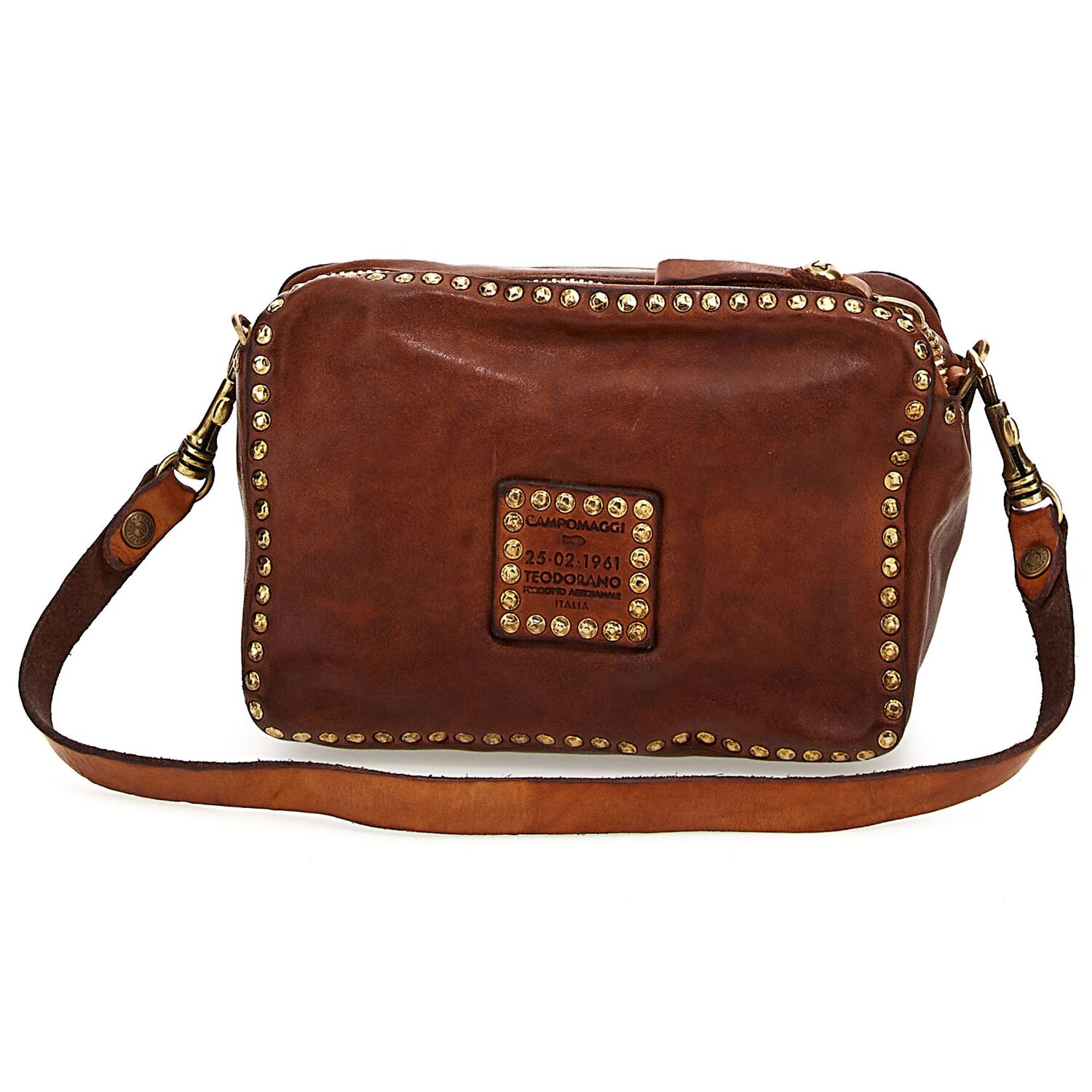 Beautiful, small shoulder bag of the brand Campomaggi made of high quality leather with eye-catching rivets and removable, adjustable shoulder strap. The longer you wear the bag, the more individual it becomes, because the leather gains additional character over time.