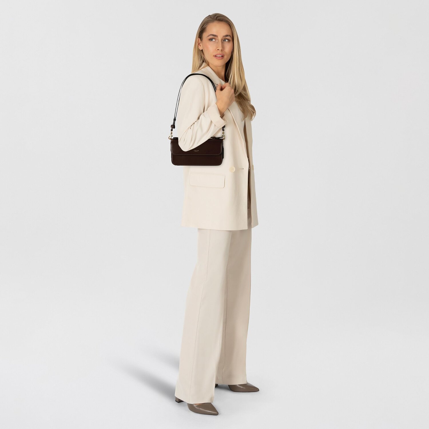 The COACH Top handbag takes you into a world of elegance and style. The perfect complement for sophisticated women, this bag is equipped with credit card slots and a zippered compartment. The fine leather gives it a luxurious look, while its magnetic fastening provides practical convenience. Always at hand, the bag is easy to carry thanks to its short main strap. The detachable, size-adjustable shoulder strap provides additional flexibility. Take the step and get luxury and comfort on your shoulder with the COACH Top handbag.