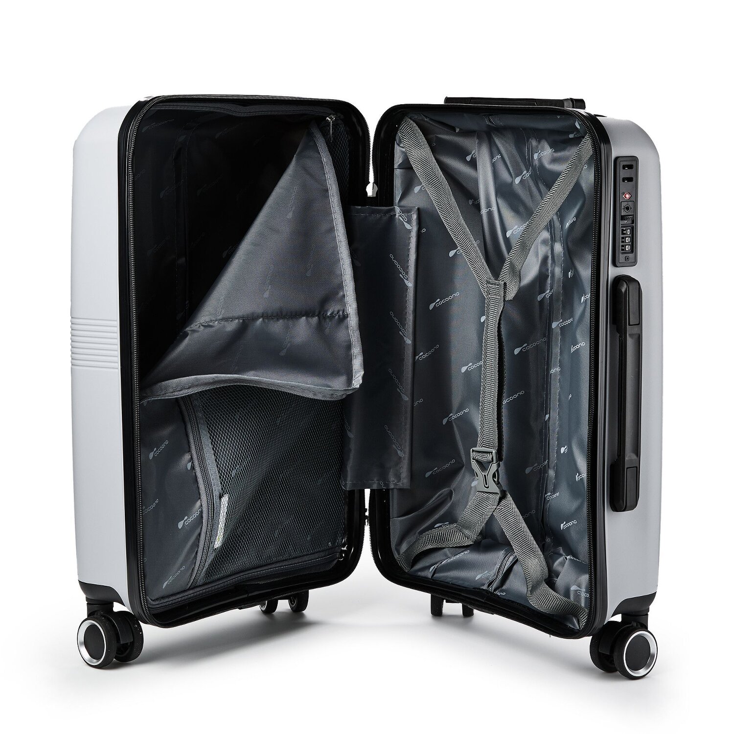 Discover the cocoono cabin trolley from the dynamic Marseille series! This trolley invites you to maneuver effortlessly with its four wheels and lockable handle. Inside, the laundry compartment, cross-packing strap and mesh pocket keep everything tidy and organized. The practical carrying handle rounds off the user-friendly design. Made from durable polypropylene, this piece of luggage can withstand the most adverse travel conditions, while the integrated TSA lock secures your valuables. Make your travel experience easier with cocoono's cabin trolley from the Marseille series!