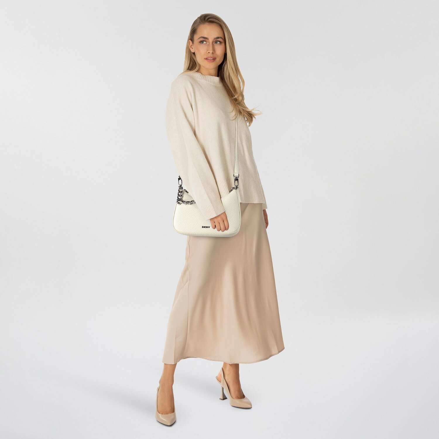 Complete your wardrobe with this stylish highlight - the Jenna shoulder bag from DKNY. The intricately designed shoulder bag impresses with its practical zipper, which gives you quick access to your essentials at any time. Its material screams pure luxury: high-quality leather with a unique look thanks to its natural texture. The bag also impresses with its customizable options: Shoulder straps, detachable and adjustable in length, as well as a long main strap offer a wide variety of carrying options. With its cleverly designed inside pocket, the DKNY Jenna bag is the perfect accessory for every fashion-conscious woman. Don't miss out on this elegant bag creation!