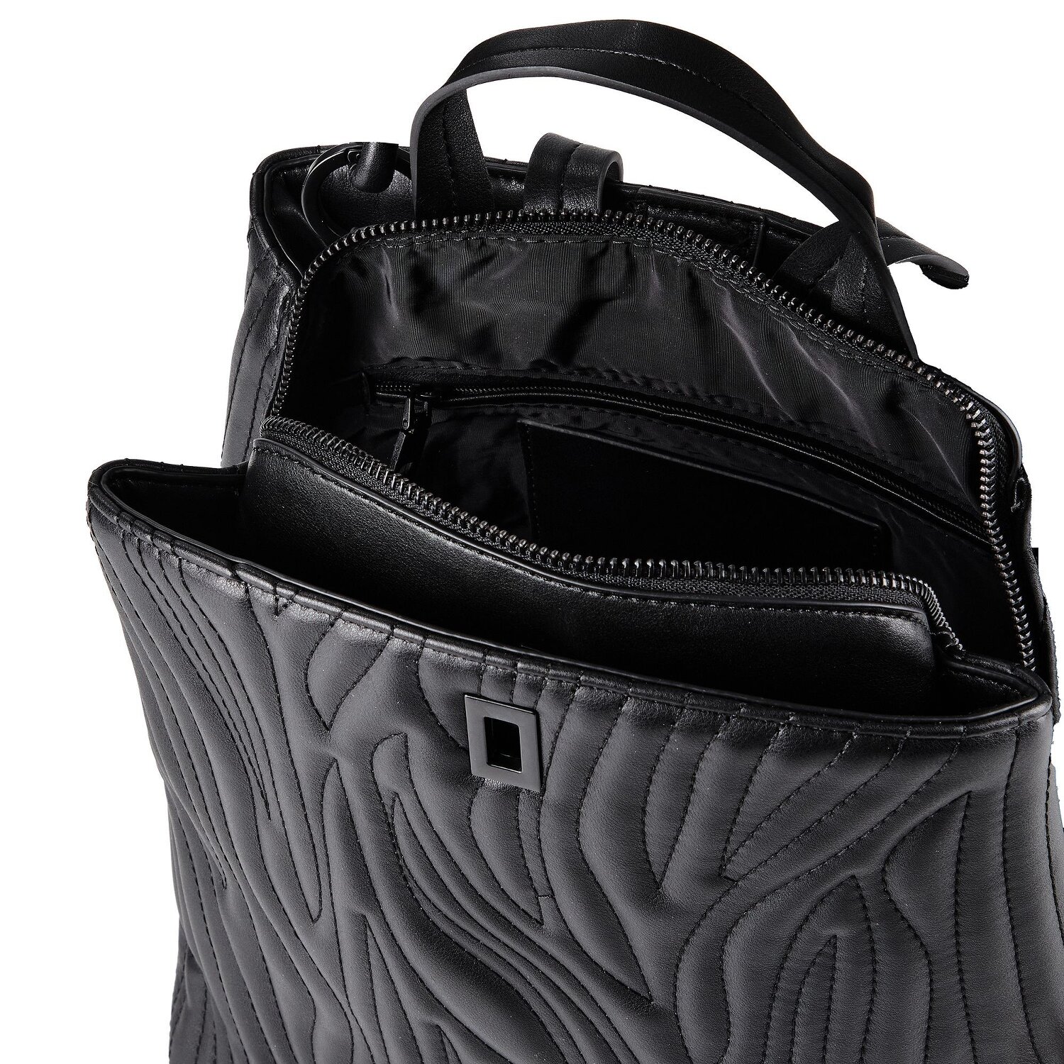 City chic meets practicality with the Desigual Helium city backpack - a piece of fashion and function combined. Designed for the modern woman, this backpack features three spacious main compartments as well as inner and outer pockets and special credit card slots - all safely stored behind the easy access of zipper, twist and magnetic closures. The elegant carry handle enhances comfort. The robust yet attractive polyurethane material ensures durability and charm. For fashion-conscious city girls who appreciate the balancing act between style and practical functionality, the Desigual Helium is simply the perfect choice.
