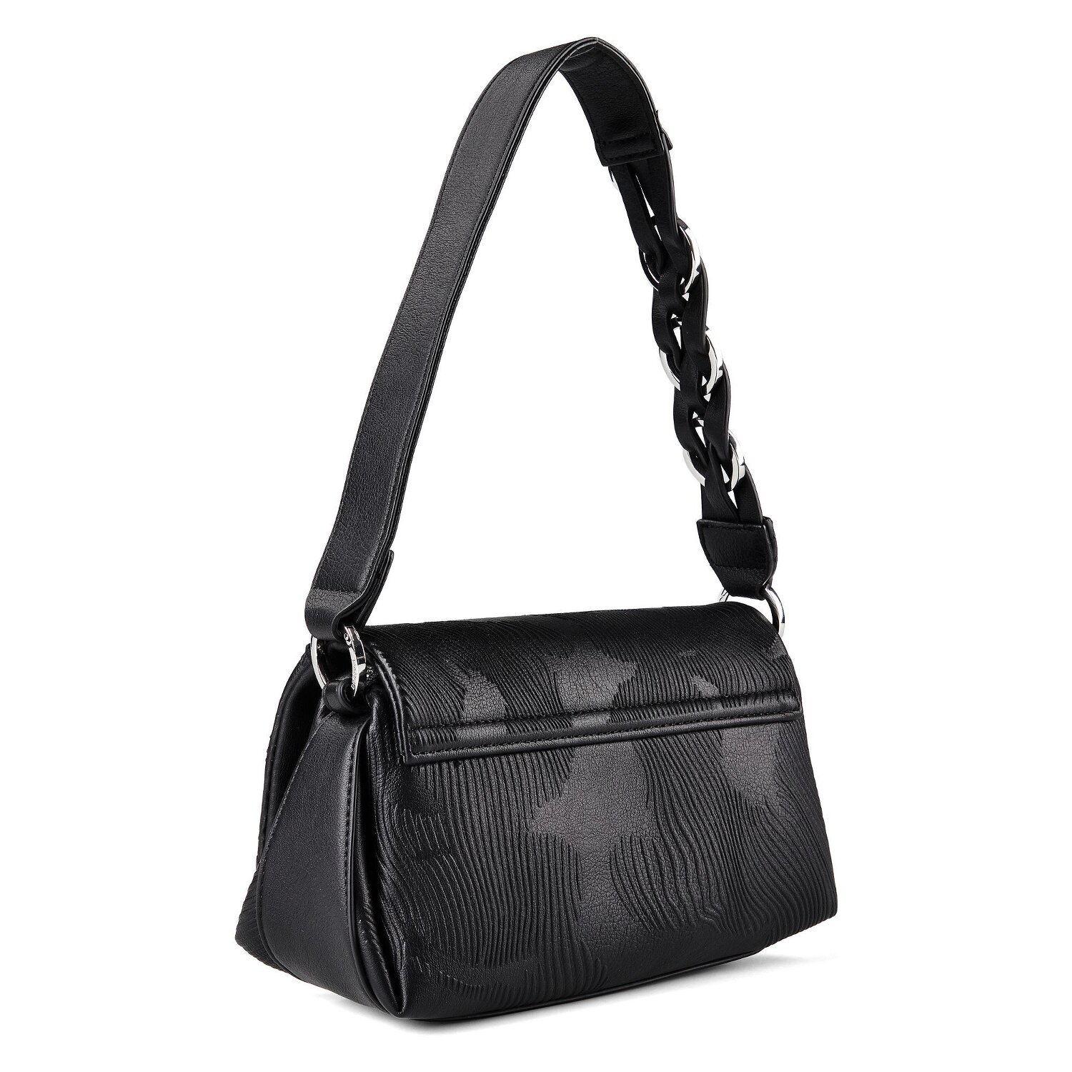 Feel the beauty of everyday life with the Desigual "Mirenis" shoulder bag, a masterpiece that is as unique as you are. This accessory features inside and outside pockets as well as credit card slots, smart storage space organized in an instant. The closure, a combination of magnet and zipper, gives you practical, easy access to your essentials. Made from robust polyurethane, the bag offers durability without compromise. The shoulder strap, easily detachable and adjustable in length, allows for easy carrying versatility. Make sure the main strap is the right length for optimum comfort. Do yourself a favor and decorate your day with Desigual's "Mirenis" - simply irresistible!