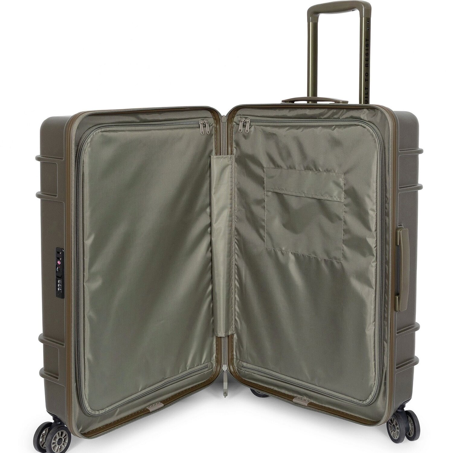 Enhance your travel experience with the Eastpak Resist'r Zip hard suitcase. With four smooth-rolling wheels and a lockable handle, it offers optimal mobility and comfort. Additional pockets inside and a laundry compartment increase organization, simplify packing and make finding your belongings a breeze. The suitcase features polycarbonate, a durable material that effortlessly withstands any adventure. A carrying handle provides additional comfort during handling. The robust construction and well thought-out design make this suitcase an indispensable travel companion. Trust Eastpak and experience the difference.