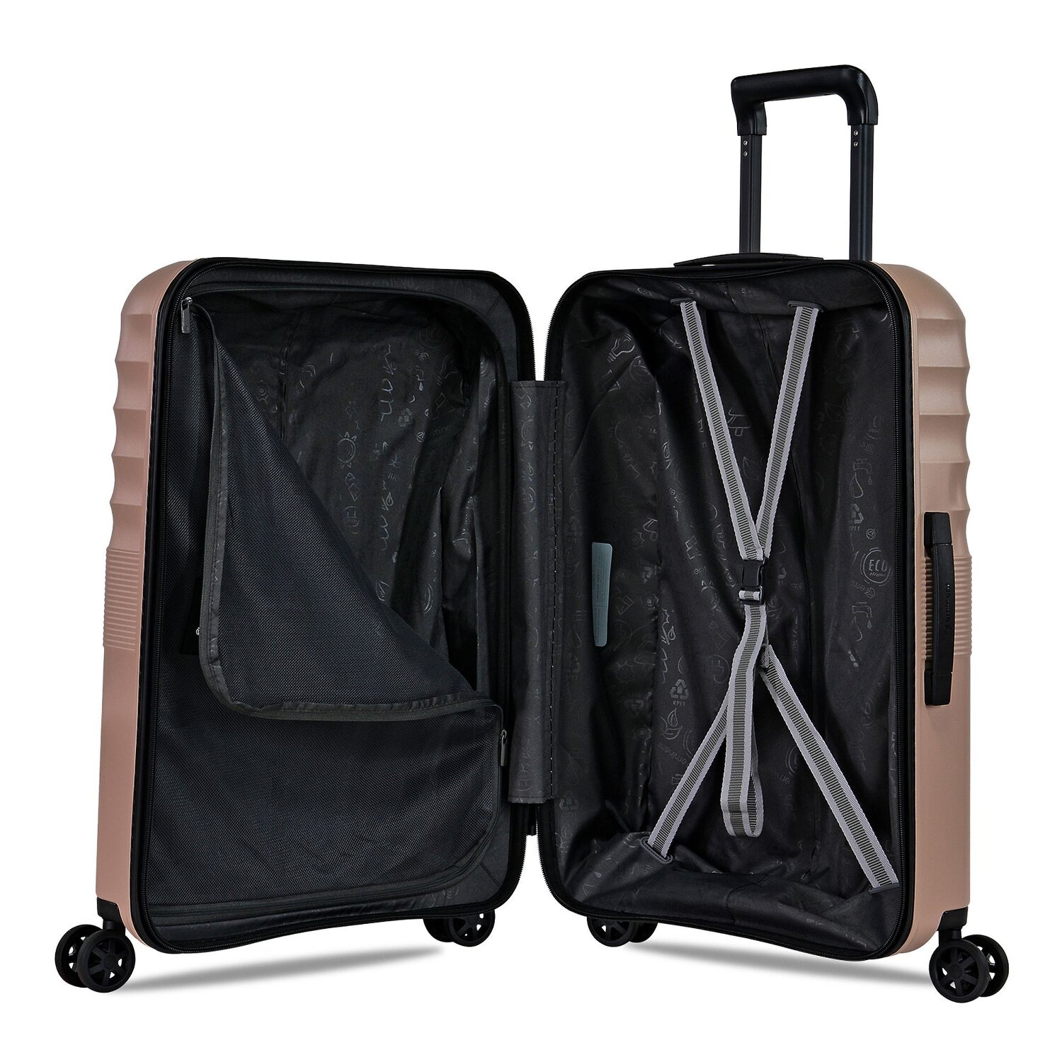 Start your next trip with the Eminent Dandelion hard case with 4 wheels. Functional and fashionable: the polycarbonate case provides stability while shining brilliantly. From laundry compartments to zippered compartments, all your necessities are covered. With a criss-cross packing strap and divider/packing panel, every item of clothing is safely and neatly stowed away. The lockable handle offers carrying comfort and the powerful TSA lock ensures security when traveling globally. Give your travels wings with this reliable companion.