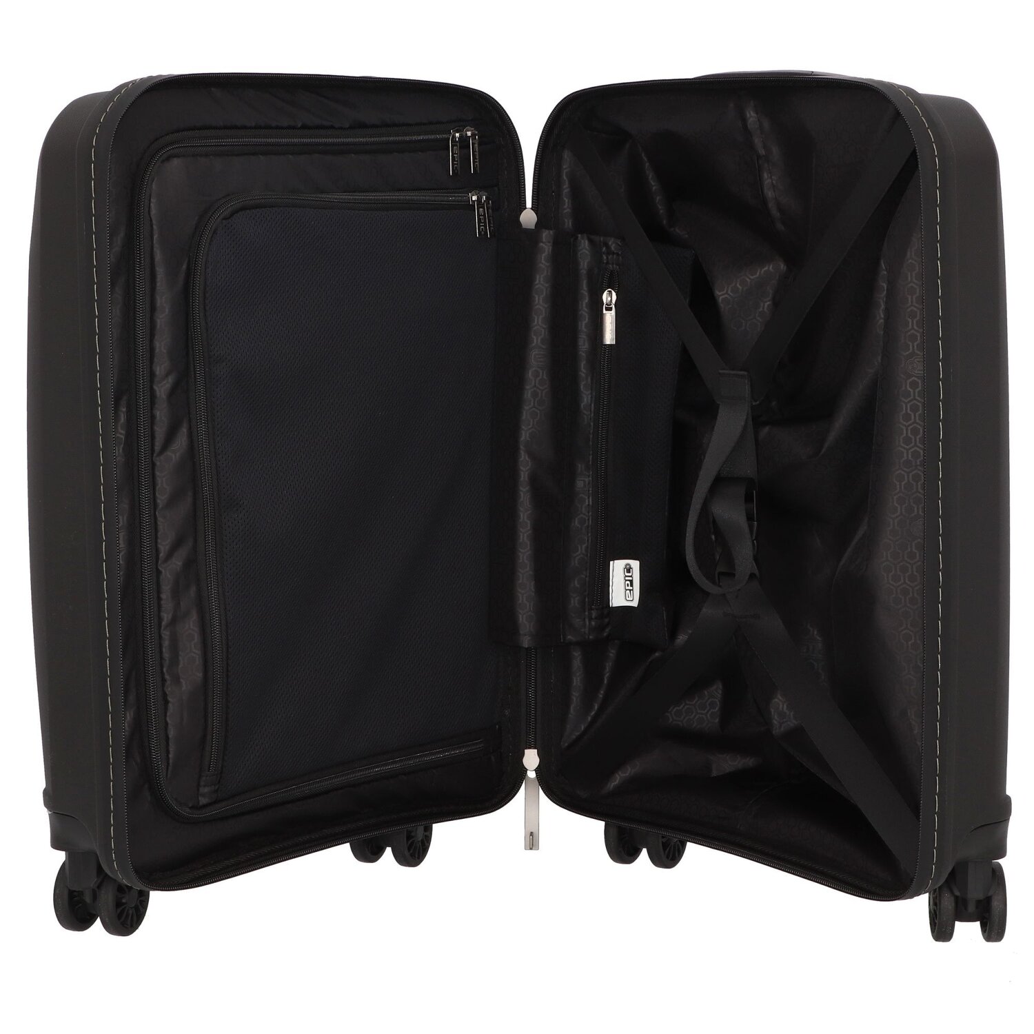 Robust, well-organized cabin trolley from Epic with four wheels and lockable handle. The trolley convinces with its high quality workmanship, stability and functionality. It has a spacious main compartment with two mesh pockets, a separately packable linen compartment and cross packing strap. The high-quality wheels and the practical interior layout make every trip an experience.