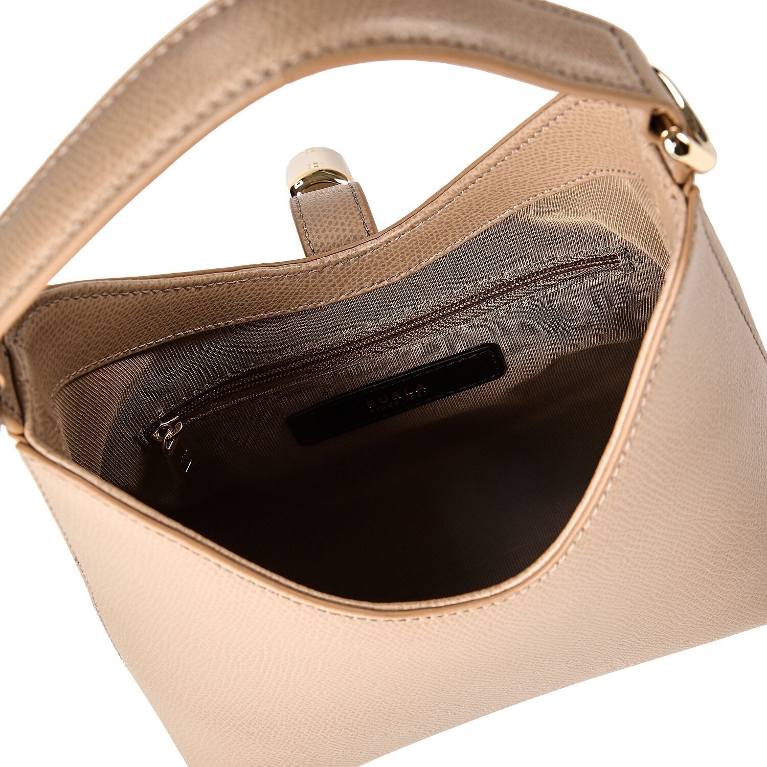 Refreshingly compact and with an urban-chic vibe, Furla's Mini Bag Handle is part of the renowned Goccia series. Designed for the style-conscious lady of today, the bag scores points with its precisely crafted zipped compartment, which is concealed behind the practical flap closure. Special attention should be paid to the exquisite leather, the texture of which is both soft and durable, giving it an unmistakable touch of luxury. Sitting at the waist and with an adjustable shoulder strap or casually closed over the shoulder, the short handle design is perfect for any look. Get your new accessory and boost your fashion sense.