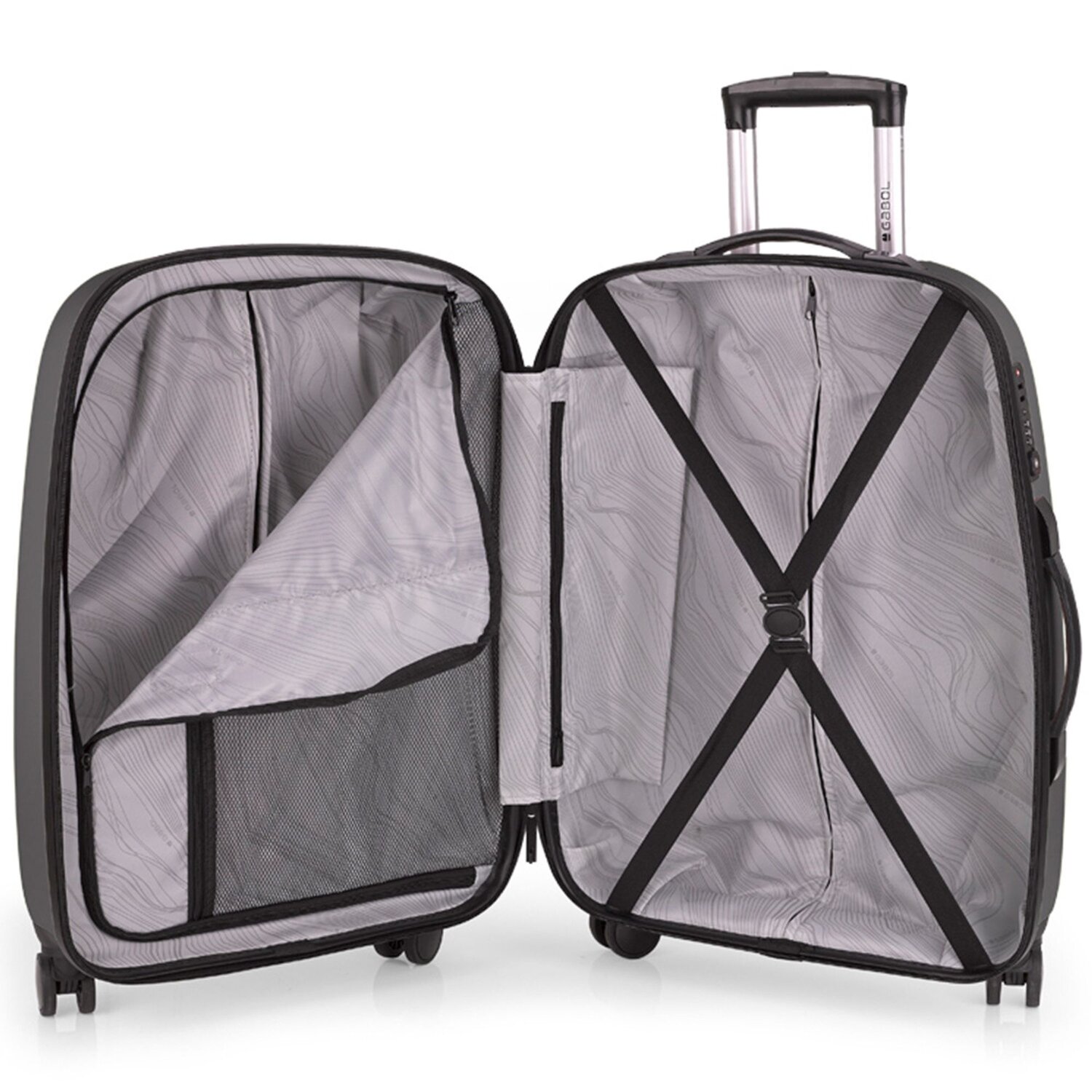 Design strong, robust 4-wheel suitcase set of the brand Gabol. The trolleys with lockable telescopic handle are the ideal companions on trips and convince with great interior, high quality workmanship, stability and functionality. All trolleys are equipped with a TSA lock for more security. The volume of each trolley is expandable. Dimensions: 39 cm x 21-25 cm x 55 cm / 48 cm x 27-30,5 cm x 67 cm / 54 cm x 29-32,5 cm x 77 cm - Volume: 35,5-42,5 L / 70-79 L / 100-112 L - Weight: 2,80 kg / 3,80 kg / 4,60 kg