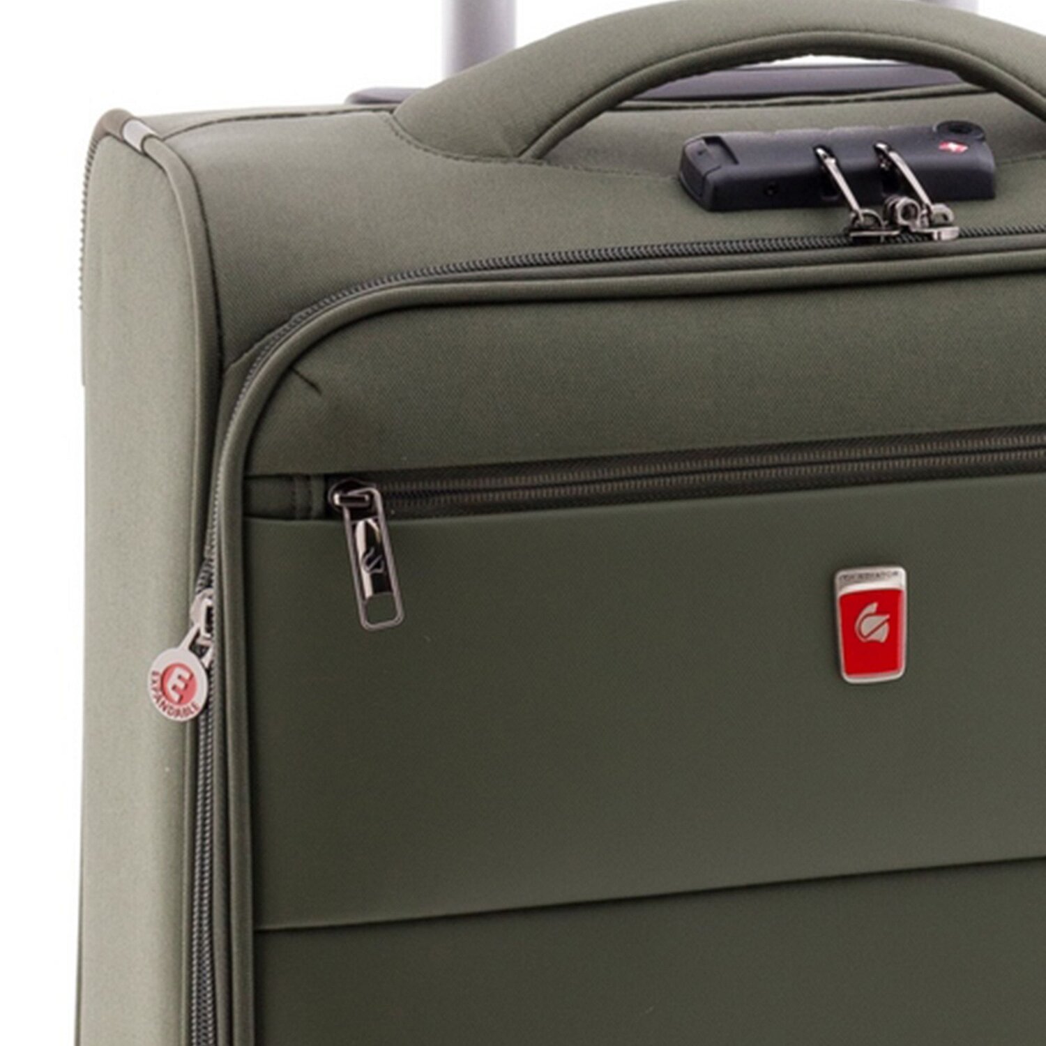 - Features: Zipper compartment, Mesh compartment, Lockable handle, Inside pocket(s), Inner packing straps, Exterior pocket(s), Expandable