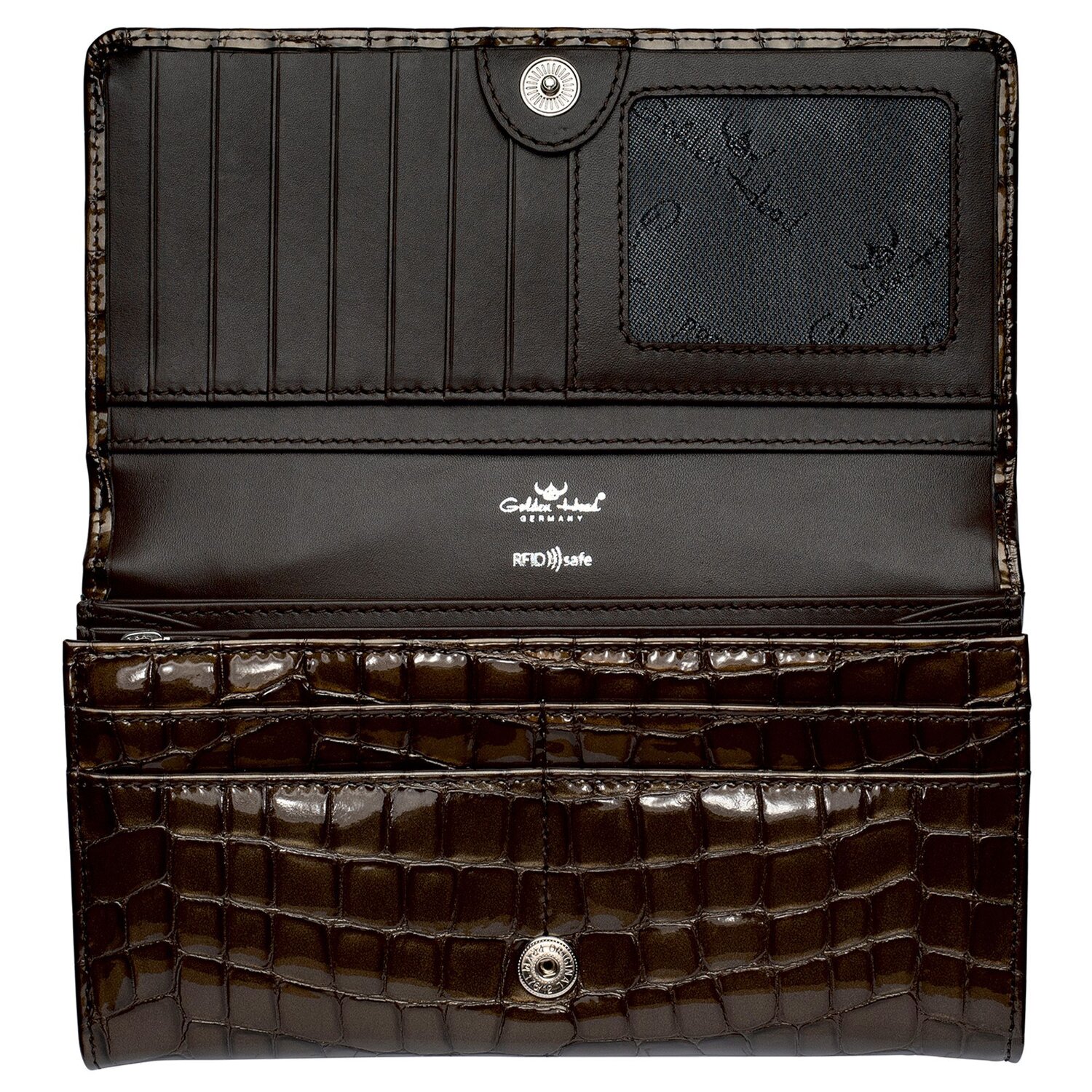 Beautiful wallet from Golden Head in fancy crocodile look made of supple leather. With numerous compartments for money and cards, this wallet is a real space miracle.