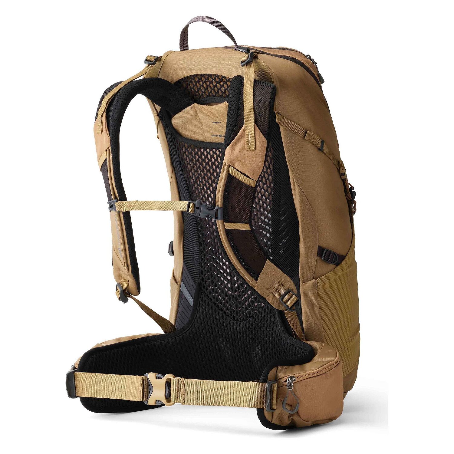 - Features: Zipper compartment, Waist belt, Padded back, Mesh compartment, Inside pocket(s), Exterior pocket(s), Ergonomically shaped