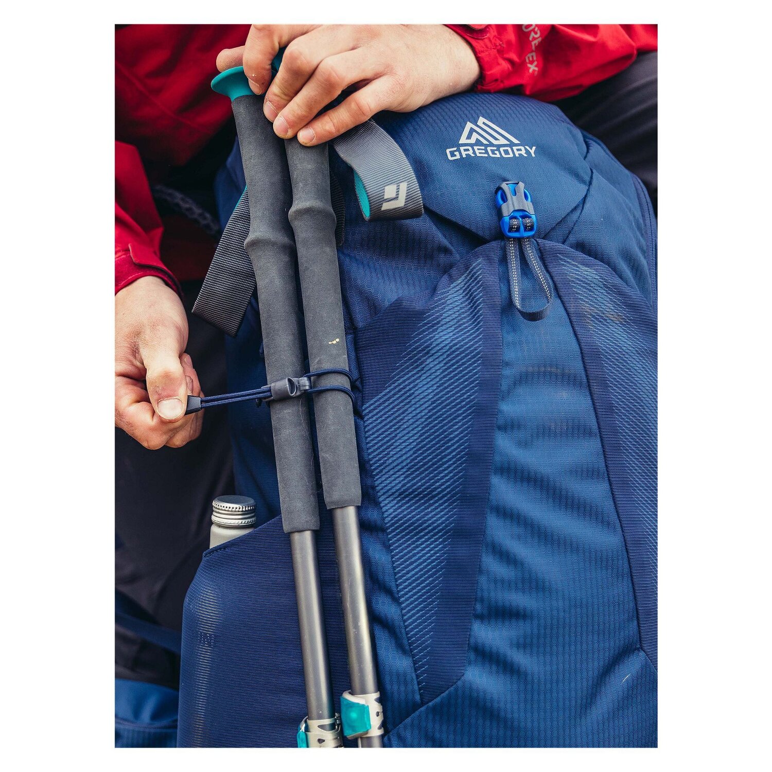 The Gregory backpack offers numerous functions for maximum comfort and versatile use. Thanks to the adjustable torso length of 9 cm, the fit can be individually adjusted. The innovative FreeFloat hip belt flexibly adapts to your movements and the 3D design of the hip belt provides the necessary padding and support, especially when heavily loaded. The continuous mesh fabric between the back and rucksack promotes air circulation and prevents heat build-up. An integrated rain cover in a special zippered pocket keeps the backpack dry and clean. The generous U-shaped zipper opening provides direct access to the main compartment. A special compartment with SpeedClip hanger is compatible with Gregory's 3D Hydro container (not included). A top zippered pocket with reflective attachment points, key clip and security pocket provides additional security and organization. Side stretch mesh pockets and a large front pocket with buckle closure provide further storage and compression. Adjustable attachment loops and holders for trekking poles or ice axes as well as comfortably shaped zipper sliders round off the features.