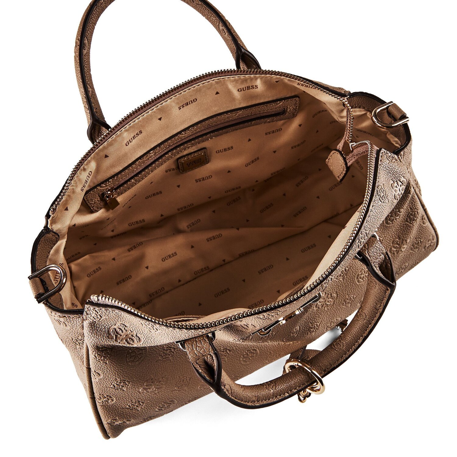 Experience the feeling of luxury with the Guess Anise handbag. Perfect for today's fashion-conscious lady, it offers ample storage space with an interior zippered compartment and additional pockets on the outside. Crafted from durable polyester, it will stand up to everyday use, while the graceful bottom studs protect against scratches and scuffs. The practical zipper ensures quick access, even on the go. Thanks to the detachable and adjustable shoulder strap, you can swing the bag to suit your fashion and comfort. The short main strap also offers alternative carrying options. Choose the Guess Anise handbag to complete your look with elegance!