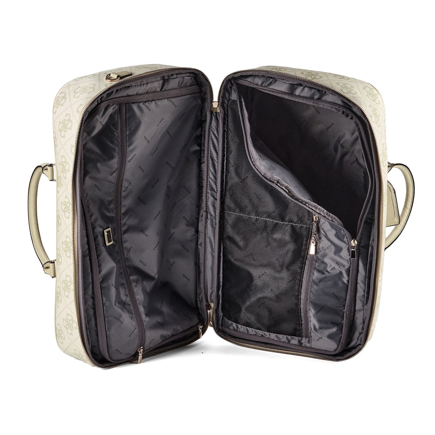 - Features: Zipper compartment, Trolley sleeve, Mesh compartment, Laundry compartment