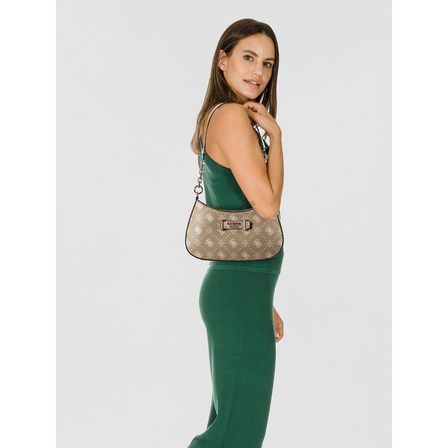 With the Carrie shoulder bag from Guess, women will attract everyone's attention. Cleverly designed, with a practical zipped compartment and additional outside pockets, it is not only an eye-catcher, but also a space miracle! Made from robust and adaptable polyurethane, it is a reliable companion for every occasion. Its easy-access zipper not only ensures security but also convenience, making everyday life a breeze. The medium-length shoulder strap allows the bag to be carried flexibly over the shoulder. Discover the extraordinary benefits of the Carrie shoulder bag from Guess for yourself. Don't miss a chance and make it your new favorite bag!