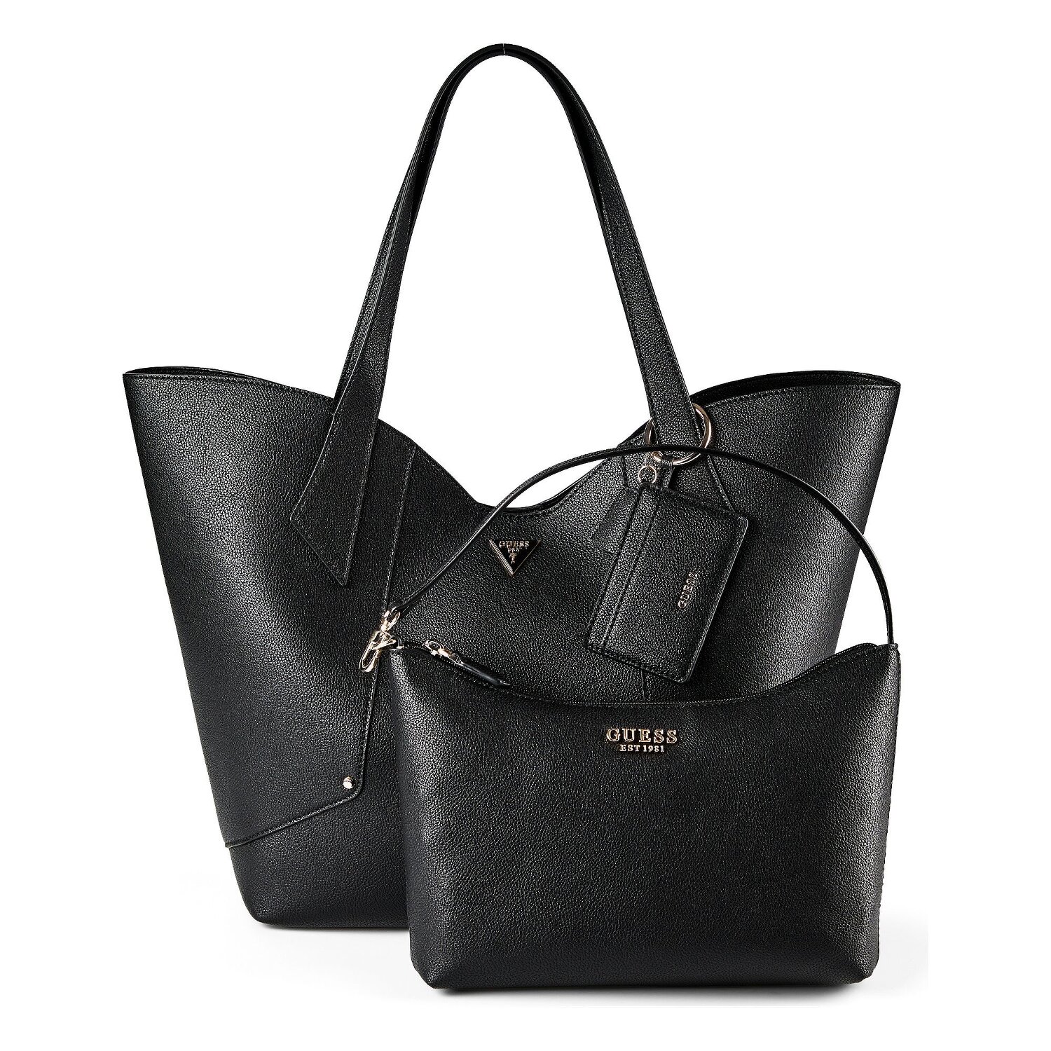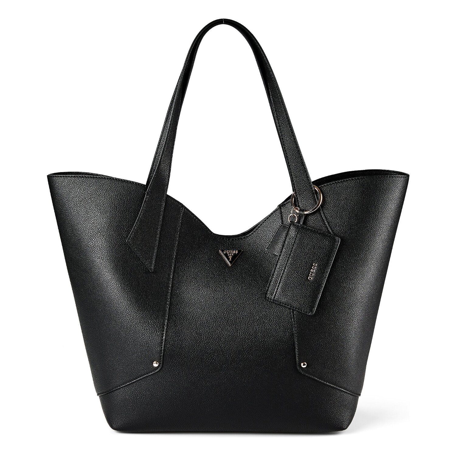 Discover the elegant "Darcy" shopper bag from Guess. Designed for fashion-conscious women, it impresses with practical features such as a removable pocket and a credit card compartment. The showpiece is made from robust and lightweight polyurethane and impresses with its unmistakable design. Fashionable studs at the bottom protect the bag from wear and tear. The carrying options are varied thanks to the shoulder strap. A practical press stud fastener secures the contents and allows quick access at the same time. With its medium-length main strap, it will quickly become your favorite accessory. Get your "Darcy" today!
