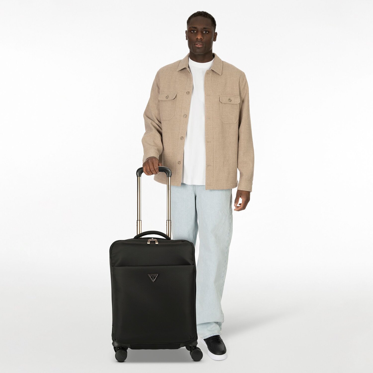 Ready for your next trip? With the cabin trolley from the Guess Follie series, packing becomes a pleasure. The polyamide material is known for its durability and longevity, making this trolley a reliable companion. With its lockable handle and four wheels, it glides smoothly through any queue. It also offers plenty of storage space thanks to the spacious zipped compartment and additional outer pockets. Inside, packing straps keep everything securely in place and the comfortable carrying handle simplifies handling. A cabin trolley like this is definitely a must-have on any travel list.