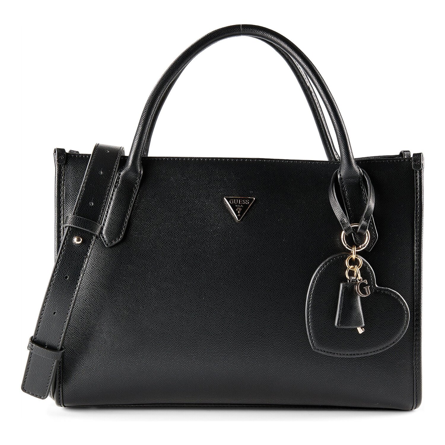 Elegance meets functionality in the Isobel handbag from Guess. This chic bag is a must-have for every fashion-conscious woman. Made from robust and durable polyurethane, it offers generous storage space for all your important items. It has pockets both inside and out, as well as a convenient zippered compartment. The practical zipper facilitates quick access and secures your valuables. The adjustable and detachable shoulder strap is a real eye-catcher, as is the short main strap, which allows you to carry it in a variety of ways. With Guess Isobel you will always stand out positively. Don't hesitate, add it to your shopping cart now.
