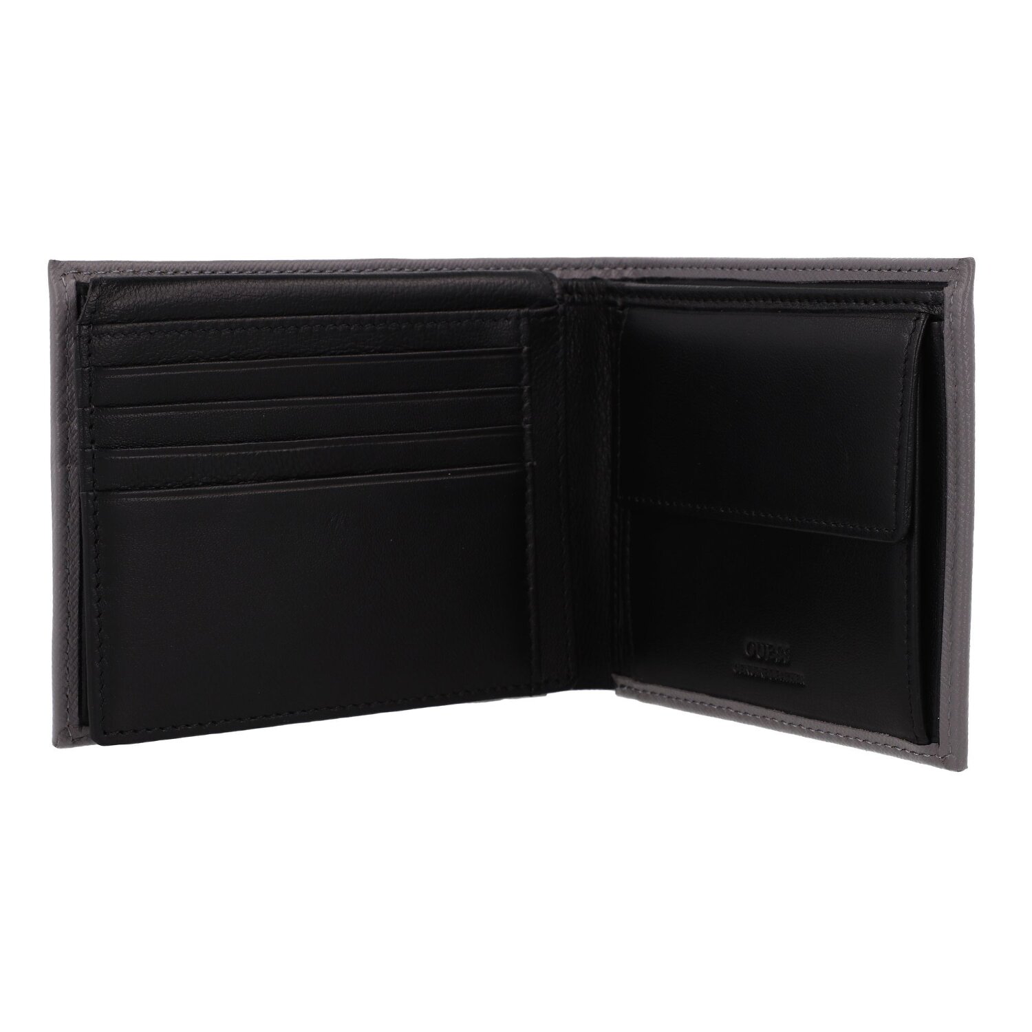 Stylish, structured and with a distinctive design: the men's wallet from the Madrid series by Guess. Specially designed for men, it offers outstanding organization and functionality with its six credit card slots, a coin pocket, two bill compartments, five slip pockets and an ID compartment. The secure press stud fastening ensures a secure hold, while the high-quality leather is an expression of quality and elegance. The elegant patina flatters the feel of the wallet, making it unique every time you touch it and adding a certain gravitas to any look. Don't hesitate, invest in this bag - a piece of style that is undoubtedly more than just a practical companion.