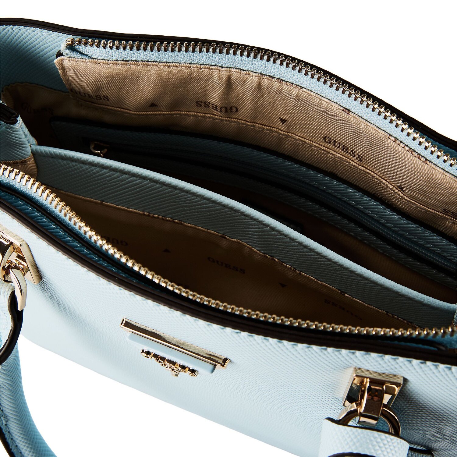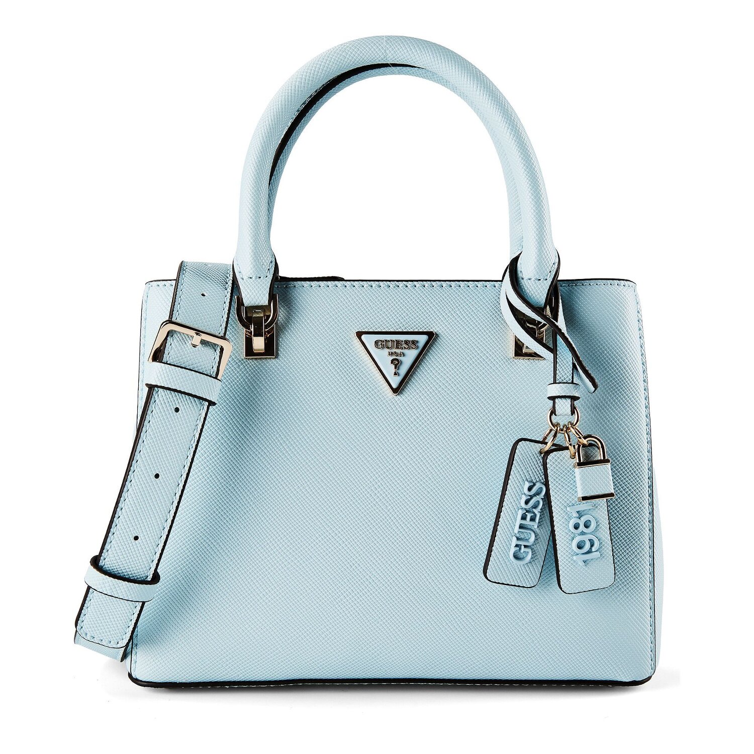 Step into the league of exquisite fashion with the Noelle handbag from Guess. This gem features an elegant zipper closure that not only makes it easy to find your belongings, but also adds a touch of practicality. Made from high-quality polyurethane, the bag impresses with its durability and charming shine. Cleverly placed bottom studs ensure that your new companion is optimally protected against wear and tear. The handbag also has a detachable, adjustable shoulder strap for flexible carrying and a short main strap. Get this essential accessory and emphasize your fashion sense.
