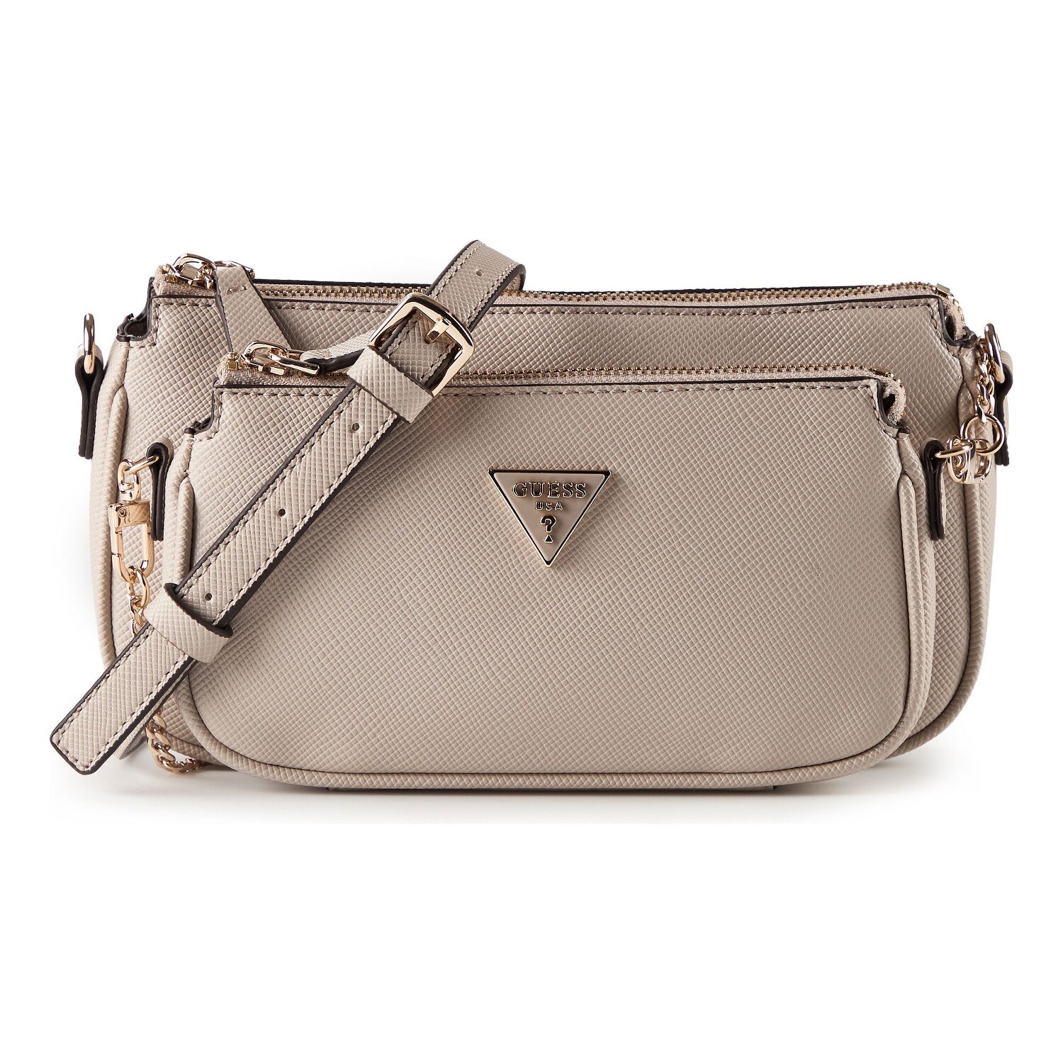 Experience elegance on a new level with the "Noelle II" shoulder bag from Guess. This women's shoulder bag offers functionality with its fine polyurethane material that is durable yet stylish. The zipper closure is not only practical, but also easily accessible, while the included credit card slots and additional zippered compartment keep the interior organized. The bag has a detachable and adjustable shoulder strap that allows for customizable carrying options. Whether as a handbag with its medium-length main strap or as a fashionable shoulder bag - with "Noelle II" you will always conjure up a trendy look. Don't miss out on this indispensable accessory!