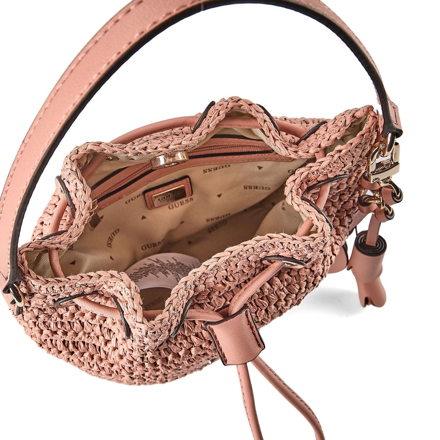 Brighten up your everyday life with a touch of elegance and glamor: the "Ofelia" handbag from Guess. Designed for the fashion-conscious woman, the bag offers spacious inner compartments with a handy zipper pocket for your valuables. It is made from high-quality paper that not only looks stylish but is also extremely durable. The magnetic closure provides additional security and is also easy to use. An absolute highlight is the detachable, adjustable shoulder strap and the short main handle, which offer various carrying options. Don't miss out on this stylish accessory. It is the perfect addition to any outfit!