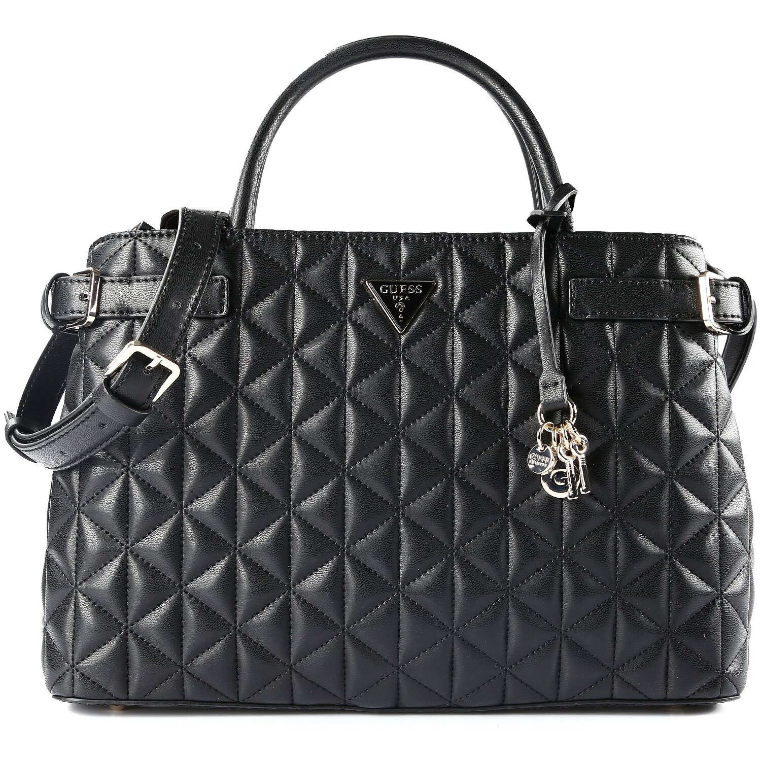A touch of luxury and a promise of everyday practicality: the Guess Paisleigh shopper bag. It combines style and perfection in every detail. Made from hard-wearing polyurethane, it impresses with its durability and softness, which you will feel with every touch. Its easy-access zipper gives the bag practical convenience and reliably secures your belongings. The bag also has a practical zipped compartment inside for smaller items. What's more, the modern shopper bag meets every carrying preference: the length of the shoulder strap can be adjusted and removed, while the short carrying handle allows for a classic look. Bring a touch of sophistication into your home and make a statement with the Guess Paisleigh shopper bag.