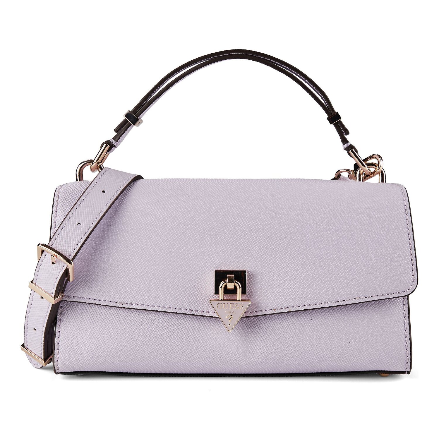 An unmistakable statement of modern elegance, the Guess Patsie handbag is an exciting new take on any look. Underlined by aesthetics and innovation, this bag focuses on functional features: Outside pocket for instant access, zippered compartment for secure storage and credit card slots for streamlined organization. A magnetic closure adds to the convenience, making access to your essentials seamless. The durable polyurethane material makes it equally practical and stylish. Bottom tacks provide extra protection and a sophisticated finish. The shoulder strap, detachable and adjustable, complements the short main strap and offers flexible carrying options. Get ready to conquer the world in style!