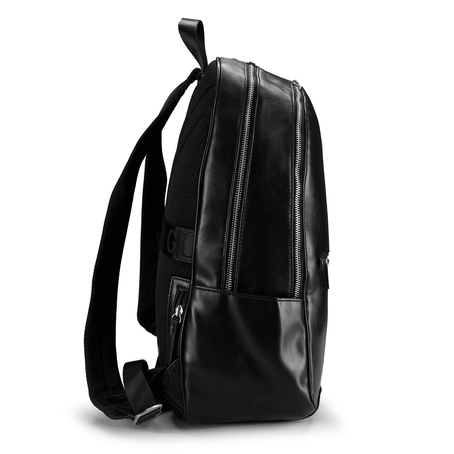 Fast, stylish and super smart - that's the Torino daypack from Guess. An everyday master for him and her, serving up crisp details with unisex-friendly functionality. There's the back padding for comfortable carrying, the hidden mesh compartment, zippered pockets and even more drawers for all your essentials. Made from durable polyurethane, this backpack will stand up to any adventure with a lightweight yet practical zipper closure. The lounge feeling for laptops is ensured with a dedicated compartment for screens up to 39 cm diagonal. And a little bonus: a tablet compartment for quick access on the go. So what are you waiting for?