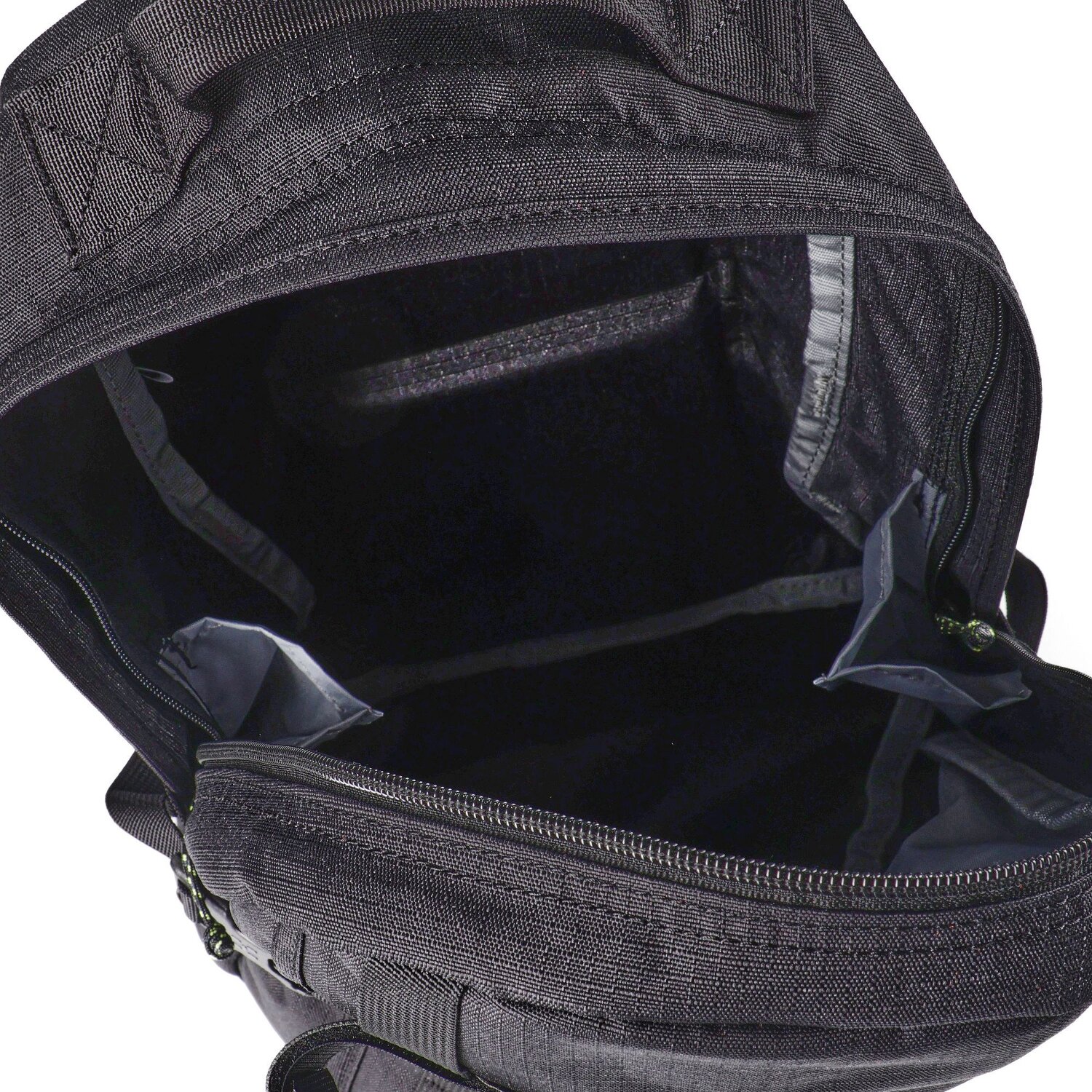 - Features: Zipper compartment, Waist belt, Padded back, compression straps, Chest strap
