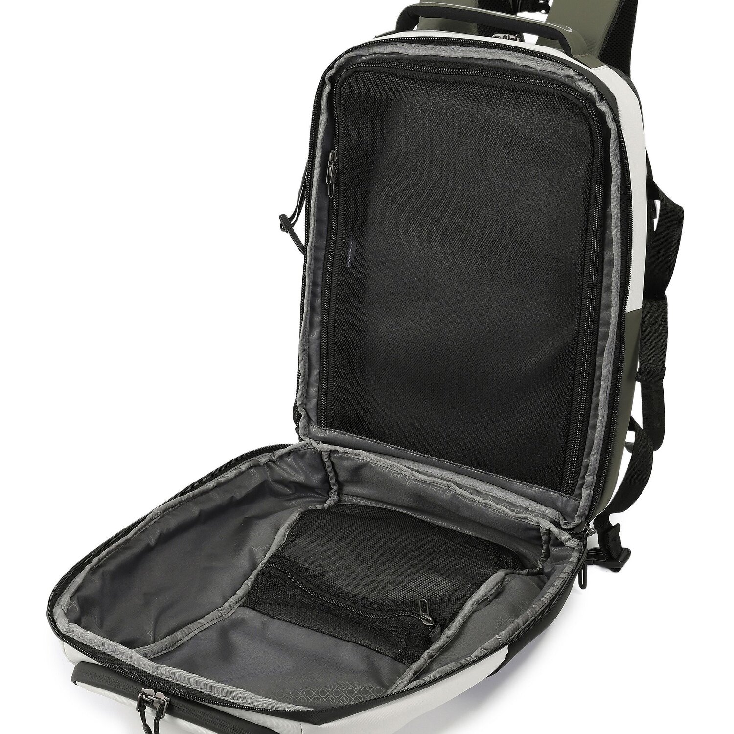 - Features: Zipper compartment, Trolley sleeve, Laundry compartment, Exterior pocket(s), compression straps, Chest strap