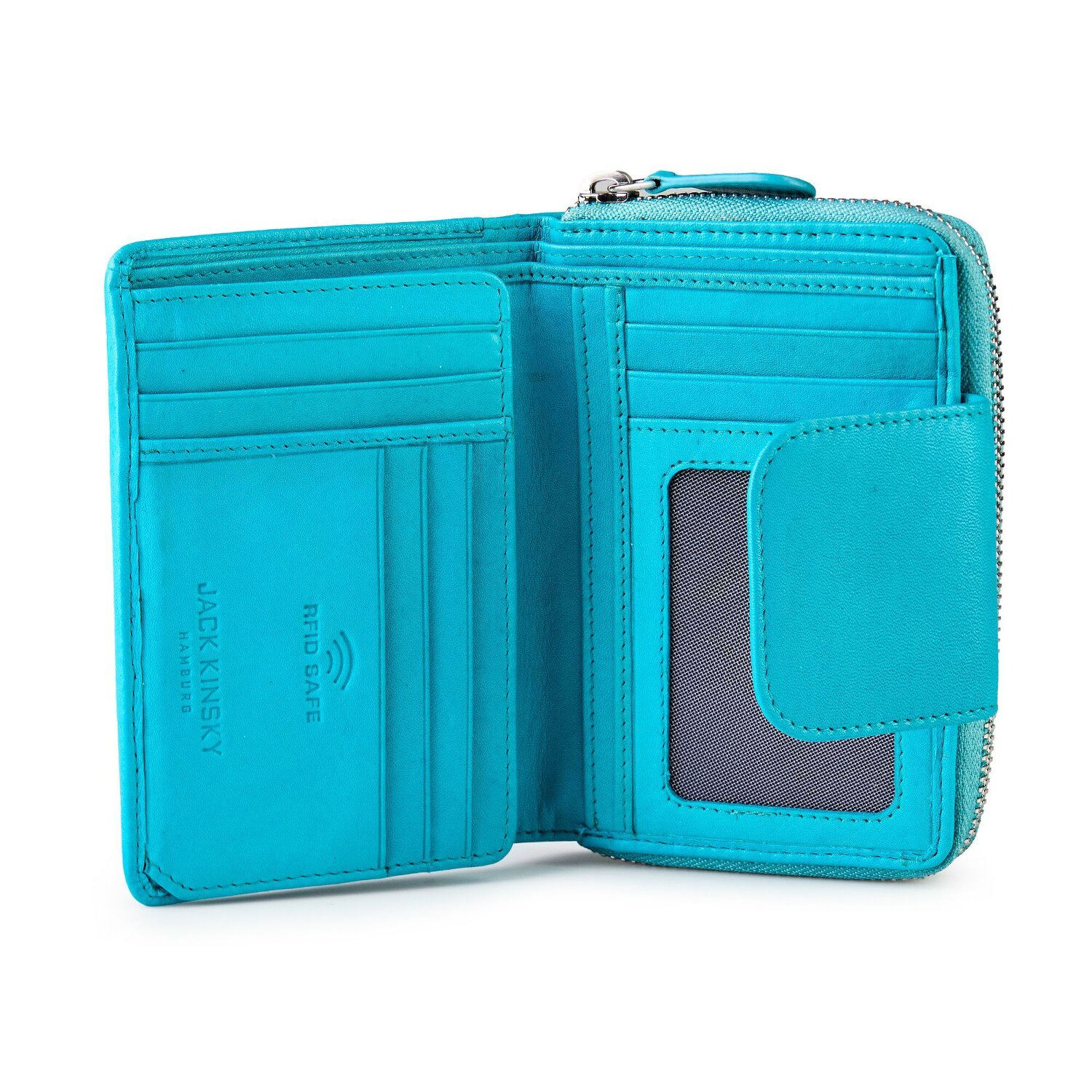 Add elegance to your style with the Aruba 511 wallet by Jack Kinsky from the Aruba series. With nine credit card slots, a coin pocket, a bill compartment and four slip pockets, this gem offers plenty of space for your valuables. Two ID card compartments complete this organizational wonder. And don't forget the RFID protection, which protects your data from unauthorized access. The supple leather, which makes each wallet unique, speaks for the top workmanship. A practical press stud fastener ensures easy access. Get yourself this top-class accessory!
