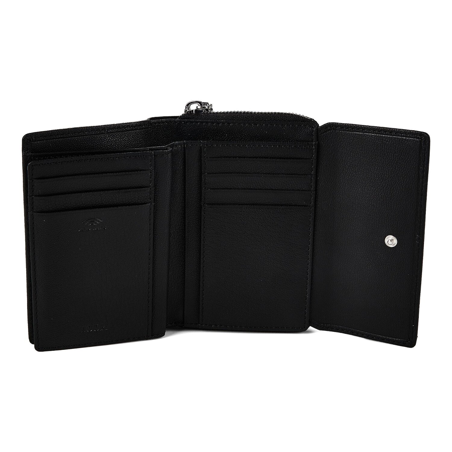 The Joop! brand presents the Lantea ladies' wallet in landscape format with irresistible elegance. Made from high-quality leather, this wallet has seven credit card slots, a coin compartment, a bill compartment and three practical slip pockets. The secure press stud fastening ensures that all your important items are safely stowed away. The fine genuine leather details are a particular highlight, giving the wallet an elegant and luxurious touch. Not forgetting the comprehensive RFID protection, which protects your cards from unwanted data theft. See this first-class combination of function and design for yourself!