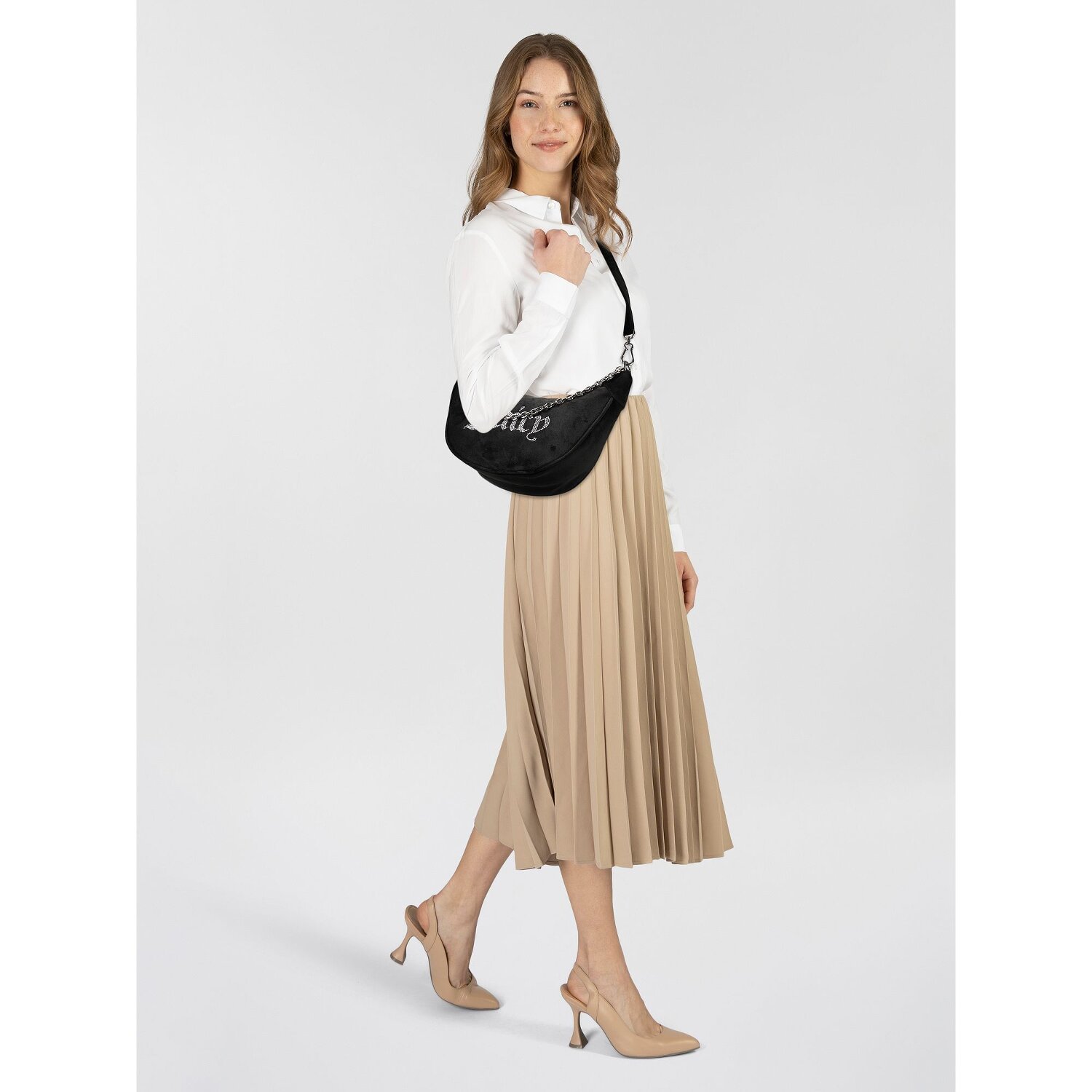 Time for a stylish eye-catcher from Juicy Couture: the Kimberly shoulder bag. Made from robust polyurethane, this elegant piece combines fashionable design with functionality. The interior features practical credit card slots and an easily accessible zipped compartment. A secure, easy-to-use zipper keeps your essentials safely stowed away. The charm of this bag is enhanced by the detachable, adjustable shoulder strap. Wear it at medium length for the perfect look. Treat yourself to this indispensable companion that underlines your individual style.