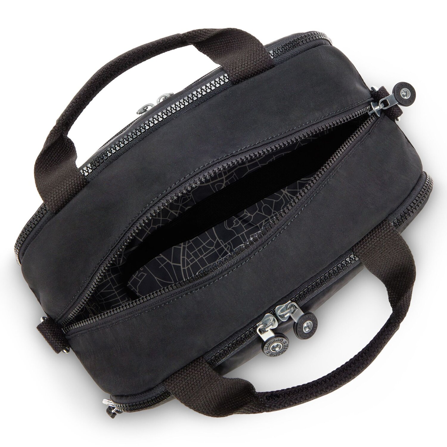 Modern beauty case from Kipling with a total of 4 zippered and slip pockets, a mirror and a total of 15 loops for cosmetics and vials.