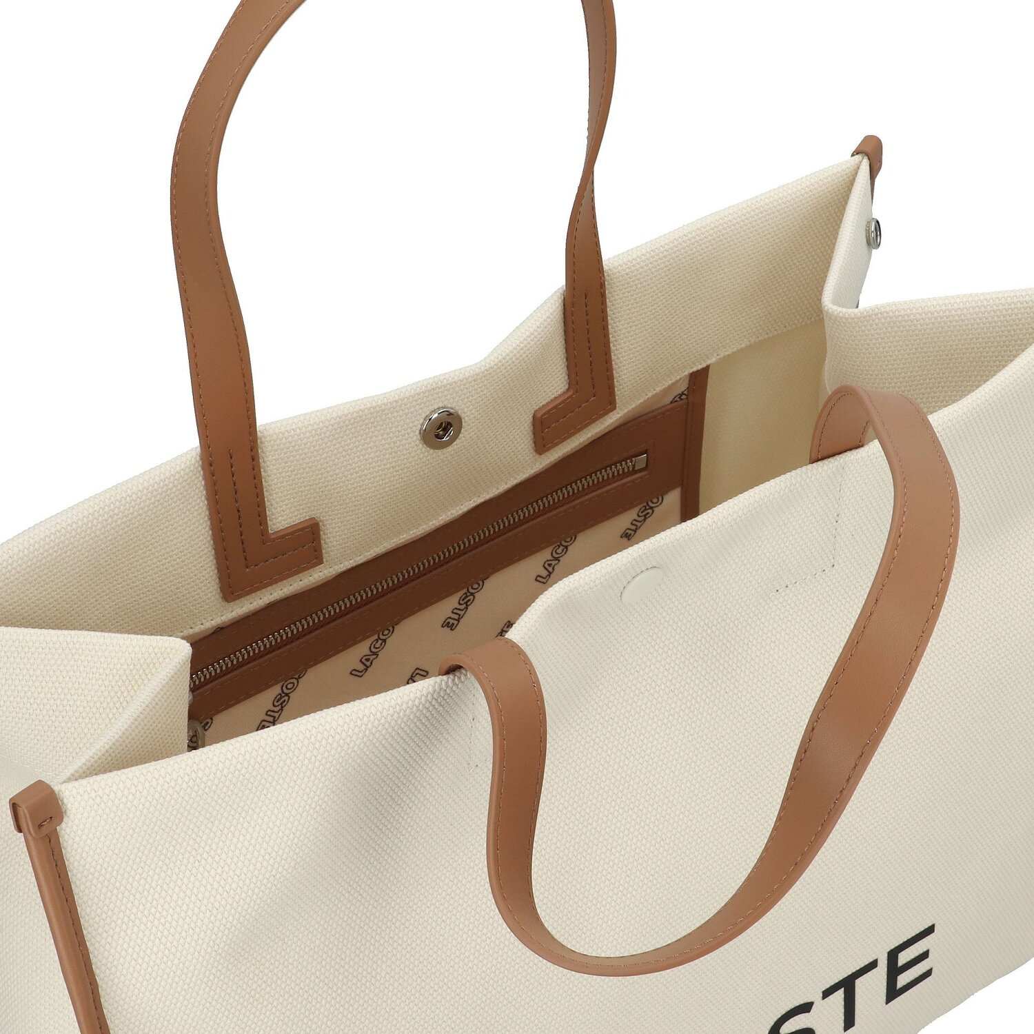 This shopper from Lacoste, made from high-quality cotton, is a fashionable highlight for every woman. Its interior reveals a spacious main compartment with a zippered pocket to keep things organized. This bag combines trend-conscious design with functional sophistication, making it an indispensable everyday accessory.