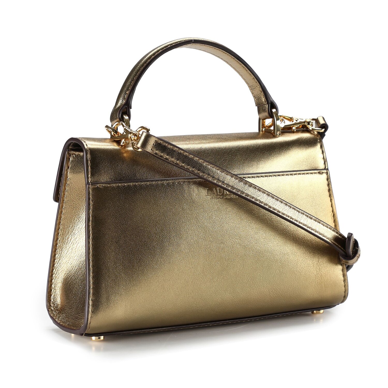 The fabulous Farrah handbag, a true style icon, comes from the pen of Lauren Ralph Lauren. Wrapped in fine leather armor with a twist lock as a showpiece, it makes women's hearts beat faster. The bottom stud detail gives this fashion accessory an extra touch of elegance. The contents not only feel luxurious, but are also protected by a user-friendly flap. With the detachable, adjustable shoulder strap and short main handle, you can enjoy different ways to carry your Farrah. Treat yourself to this designer handbag and embody women with taste.