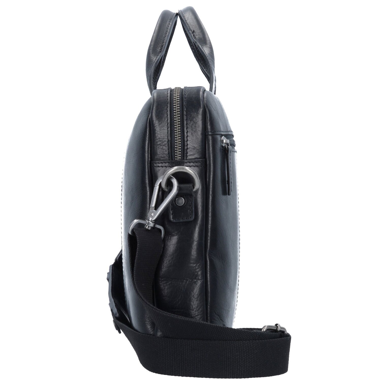 Slim briefcase from Leonhard Heyden made of sturdy leather with padded laptop compartment and adjustable shoulder strap. The practical bag has a main compartment and several side pockets for valuables, cell phone, pens and more.